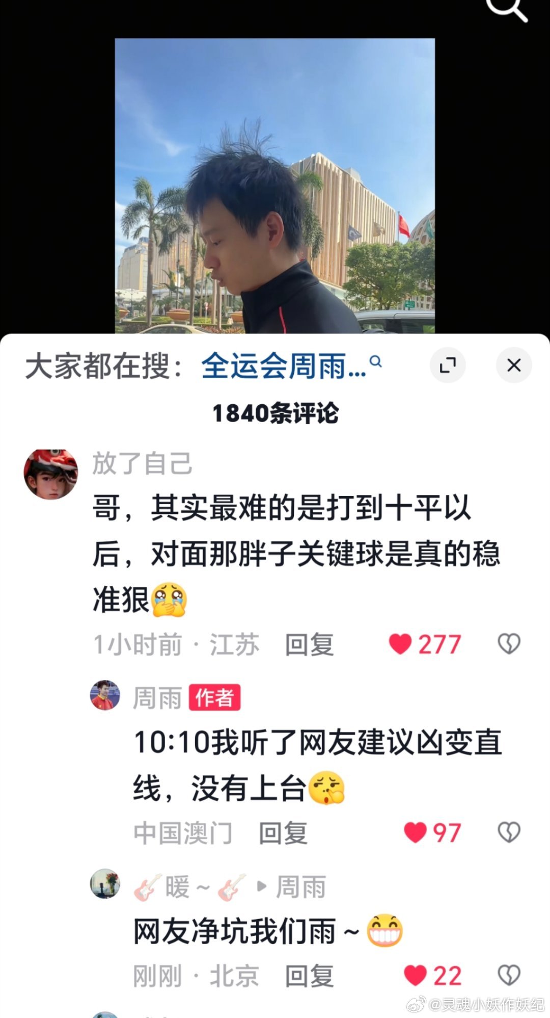 网友:哥,其实最难的是打到十平以后,对面那胖子关键球是真的稳准狠