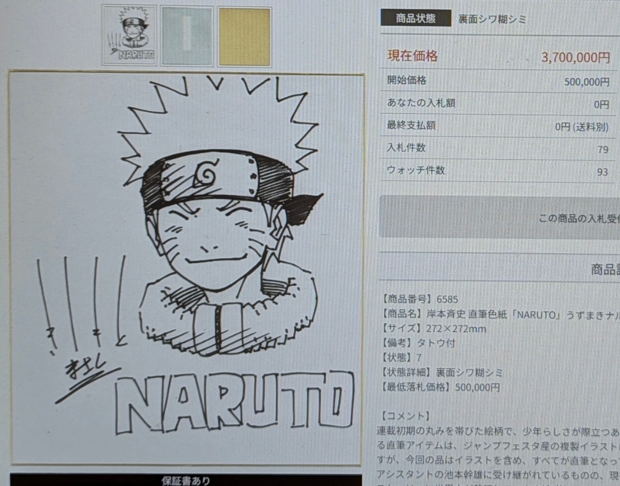 这是一张价值370万日元(折合人民币约17万元)的一张鸣人色纸![吃惊]