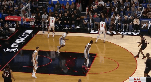 图2和沃特福德精彩的Give and Go配合,空切摆脱谢德后空中对抗左手终结打进。