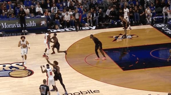 除了进攻端的进步之外,杜伦在防守端的正面护框方面也取得了一定进步——赛季至今杜伦的护框降准率提升至了-5.9%,较之上赛季的-1.3%进步明显。在今天对阵费城的比赛中收获了两次盖帽。