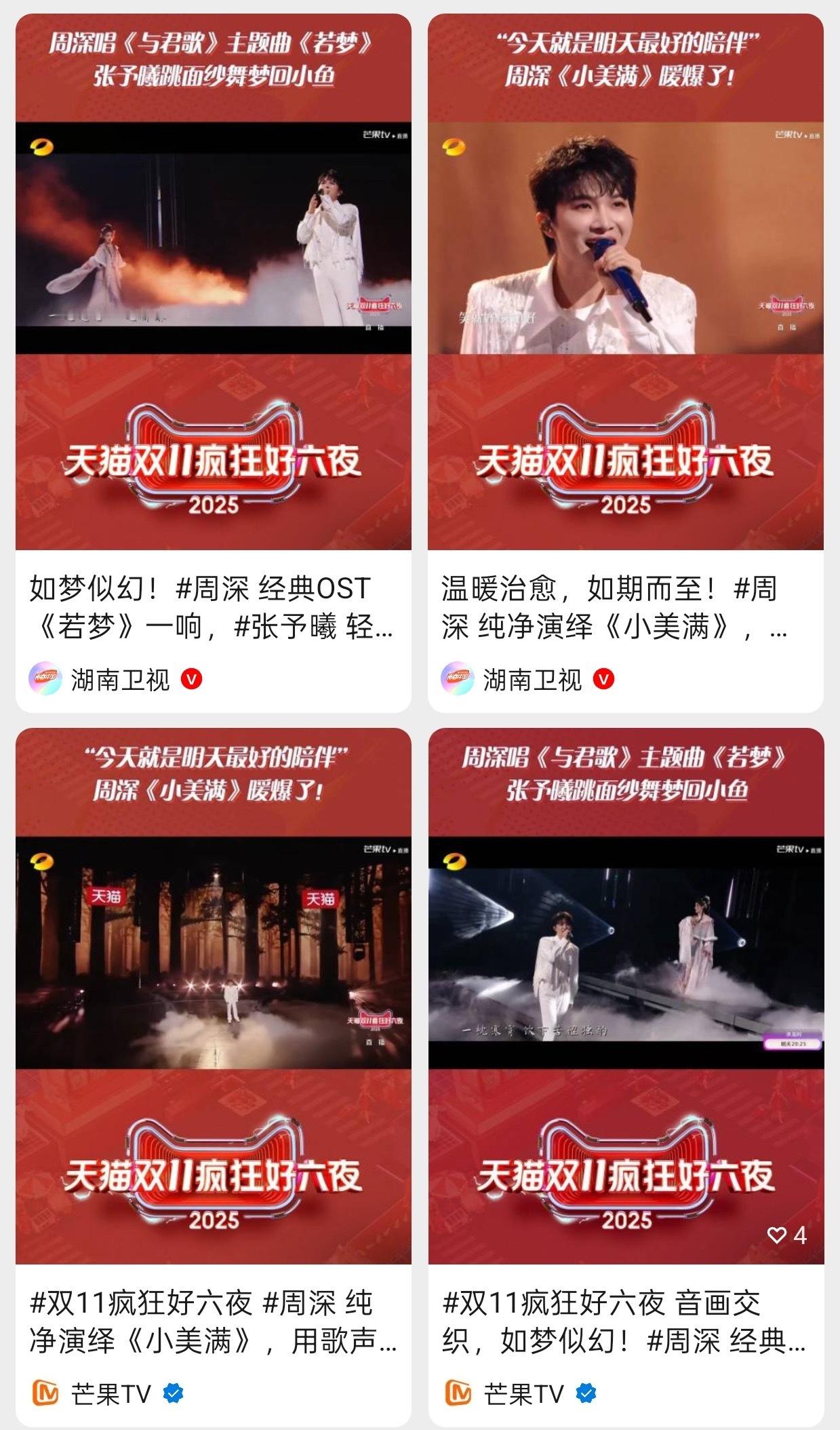 【湖南卫视】【芒果TV】多平台更新了深深的今晚双11的舞台