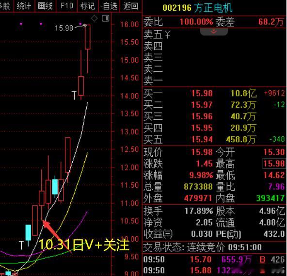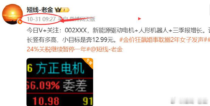 太强了!10.31日早盘v+送出的$方正电机 sz002196$ 今日继续强势拉升涨停!买入的老铁可累计获利46%左右的收益!恭喜订阅V+跟上的朋友,喜迎财富!小米SU7改款涨价近1万金价