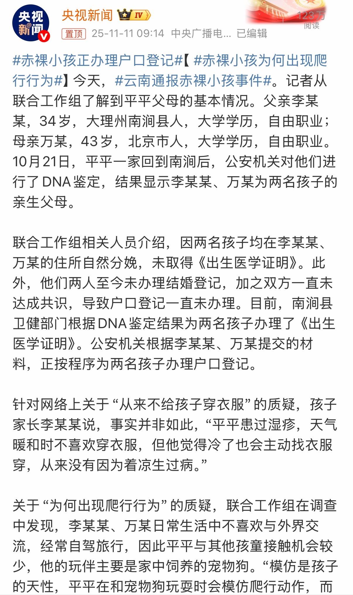 云南通报赤裸小孩事件官方通报出来了,孩子是亲生的,没有虐待,只是教育方式不同