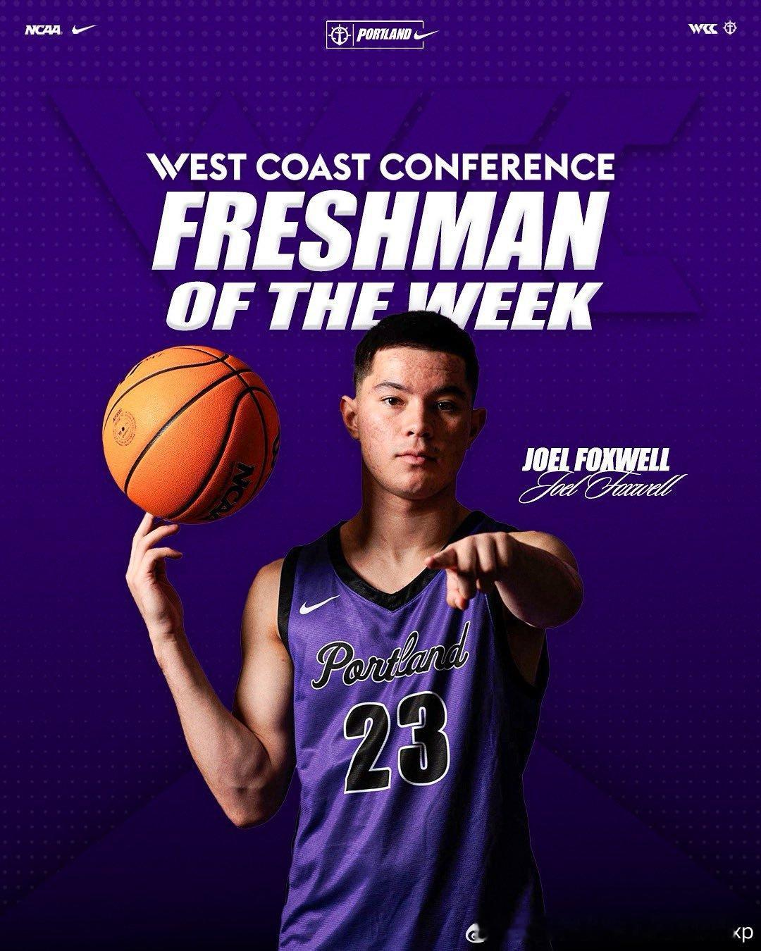 波特兰大学澳洲菜鸟控卫Joel Foxwell入选WCC联盟周最佳新人,目前场均可以得到17.7分4.3板6助2断亚洲篮球NCAA[超话]