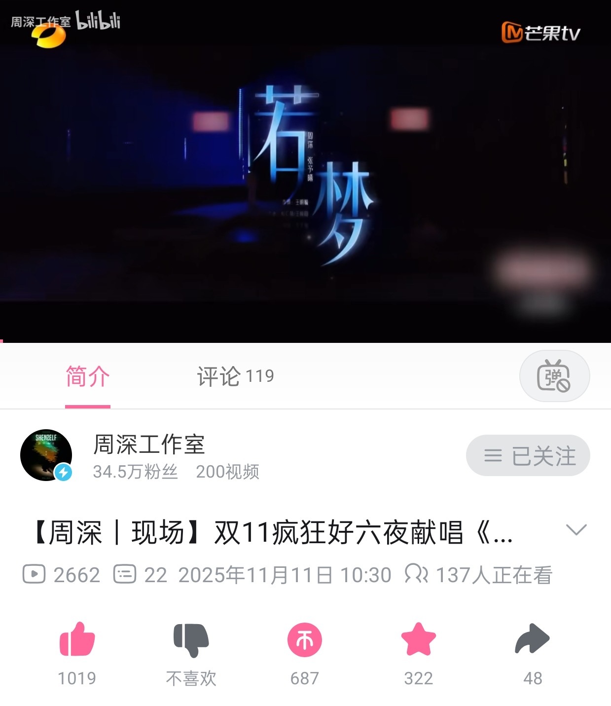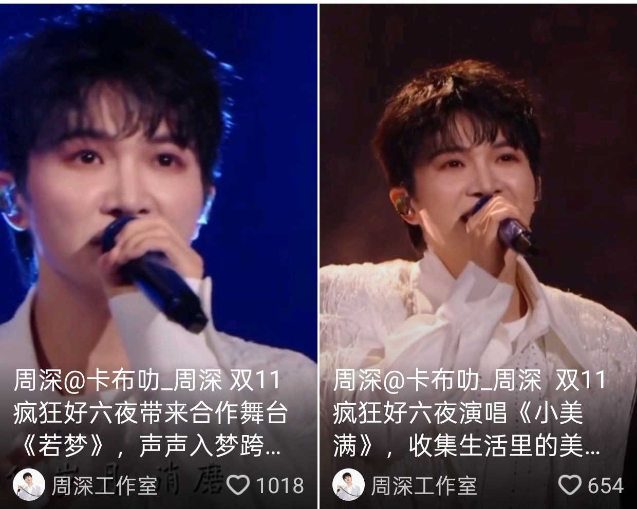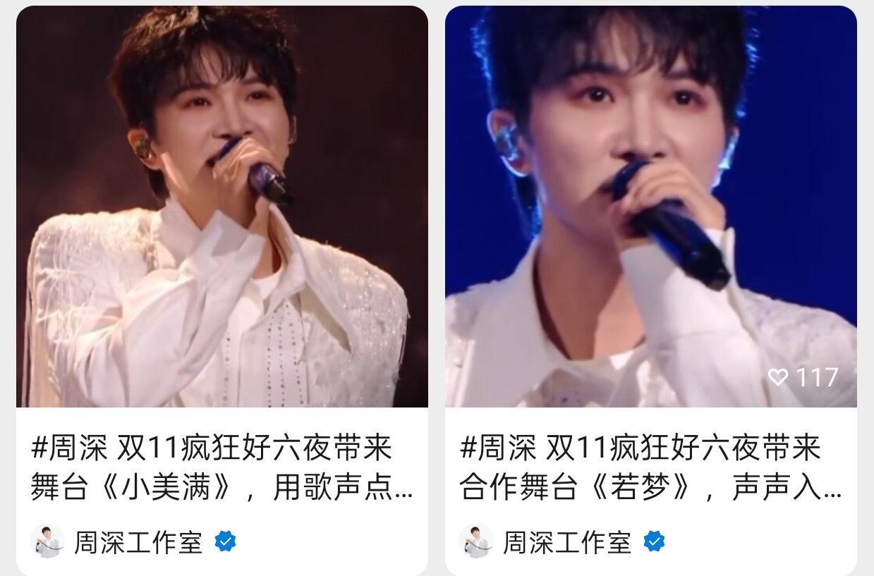 【周深工作室】在各平台更新了深深昨晚双11舞台