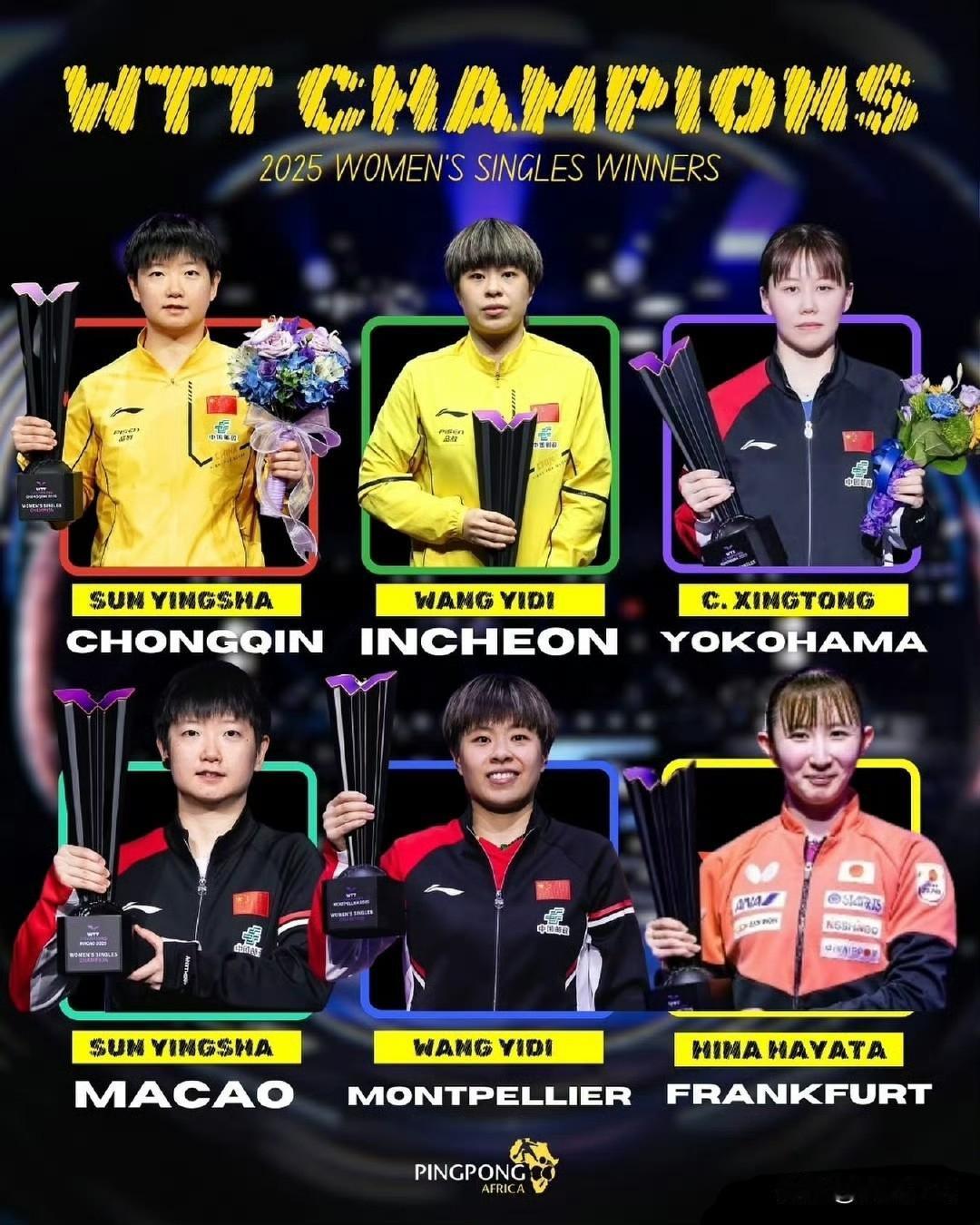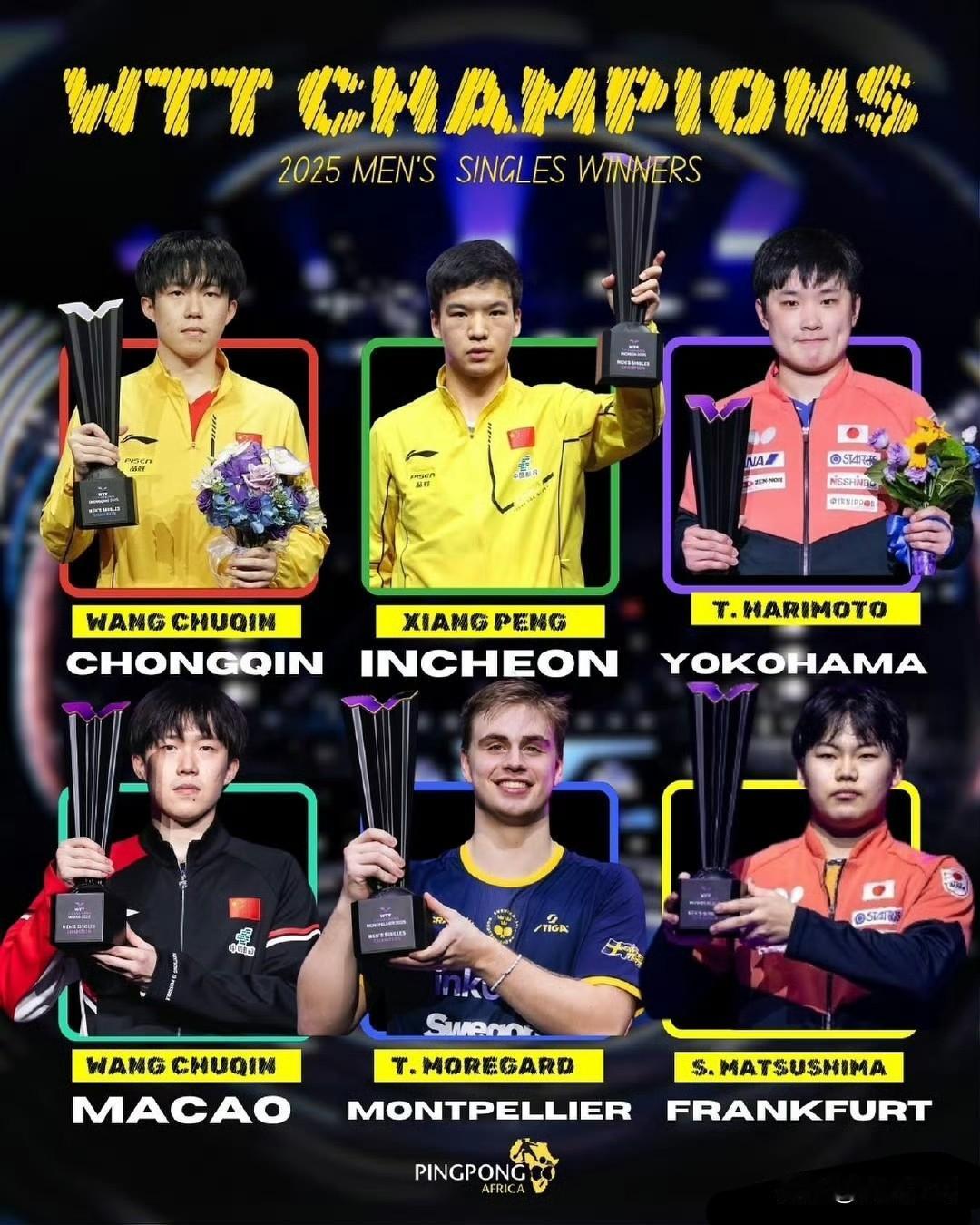 2025年6站WTT冠军赛🏆 圆满落幕。冠军榜如下图。 2025.11.11