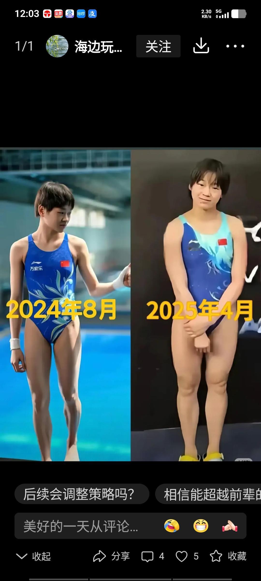 全红婵在双人十米台项目仅获得第五名,着实令人失望,粉丝们的满心期待就此落空,甚至连领奖台都未能踏上,着实有些令人难以接受。当你看到她如今的身形,或许就能明白缘由。毕竟她还年轻,正处于发育阶段,此时必须强化自律意识,严格控制饮食。在这个阶段若无法管理好身材,很容易发胖,如此一来,还能压好水花吗?而且长胖后再减肥,难度极大,这便是她发挥失常的原因所在。