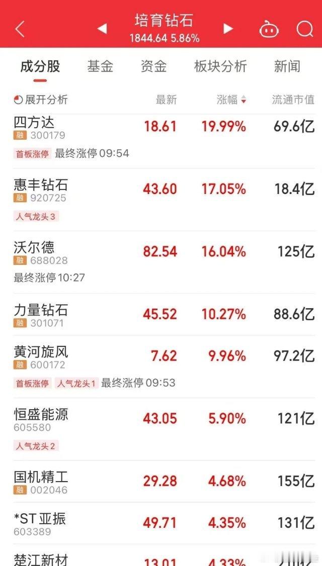 9. 晶盛机电:MPCVD设备成功生长宝石级金刚石,克服规模化生产瓶颈,2025年培育钻石设备订单增长,今日随板块上涨,是上游设备核心供应商。