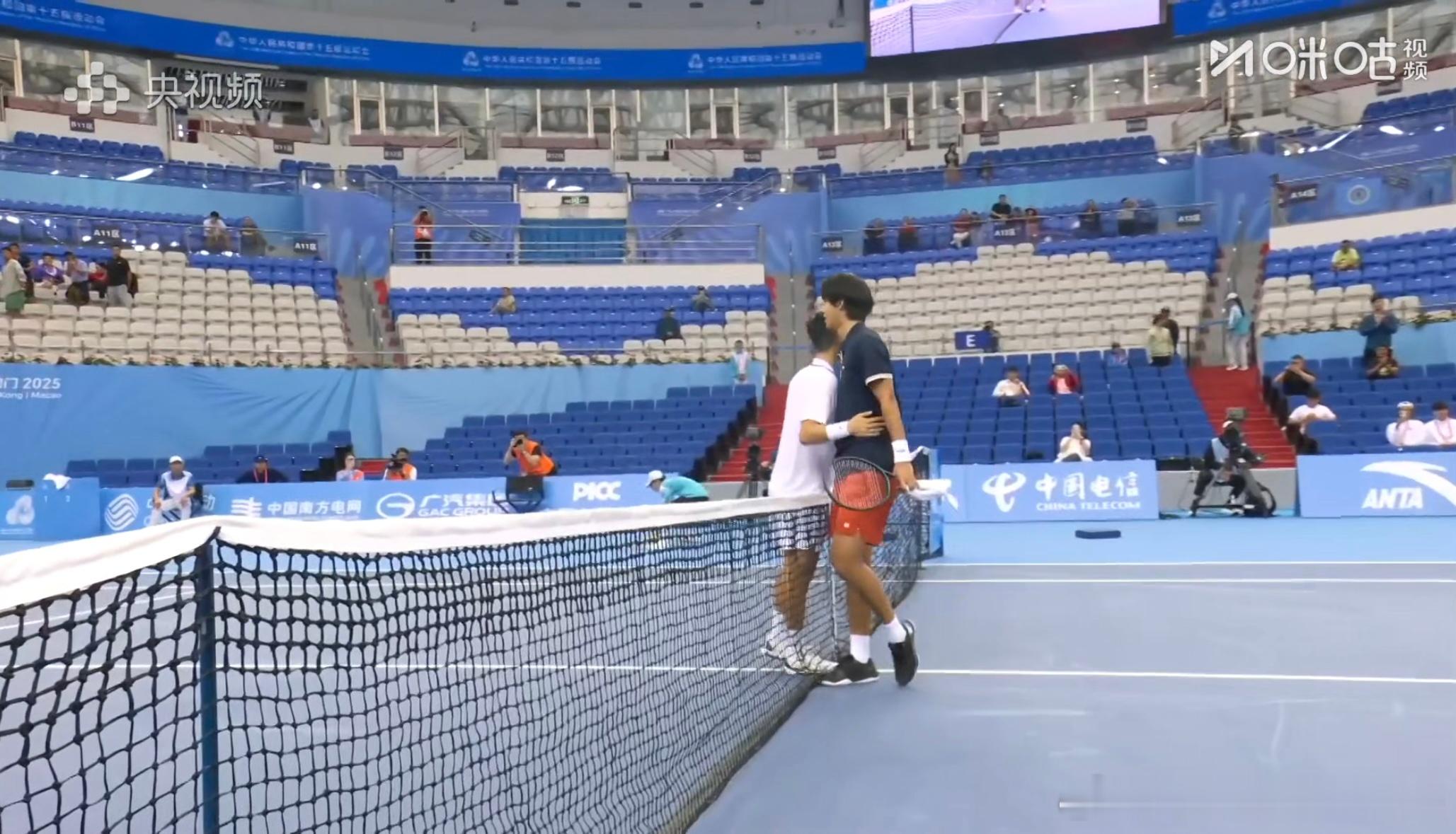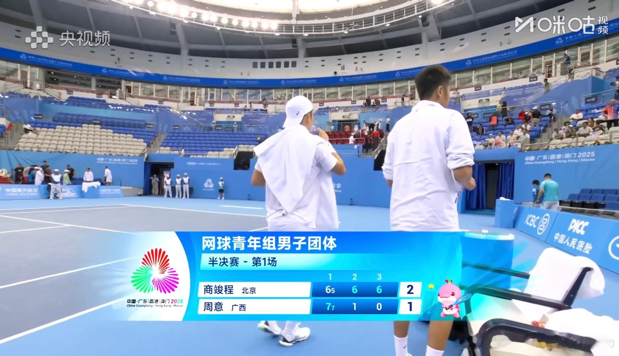 商竣程6-7/6-1/6-0周意!第十五届全运会网球男团半决赛,这场球第一盘非常非常精彩,场面很燃,小商和小周展现了高水准的对抗……