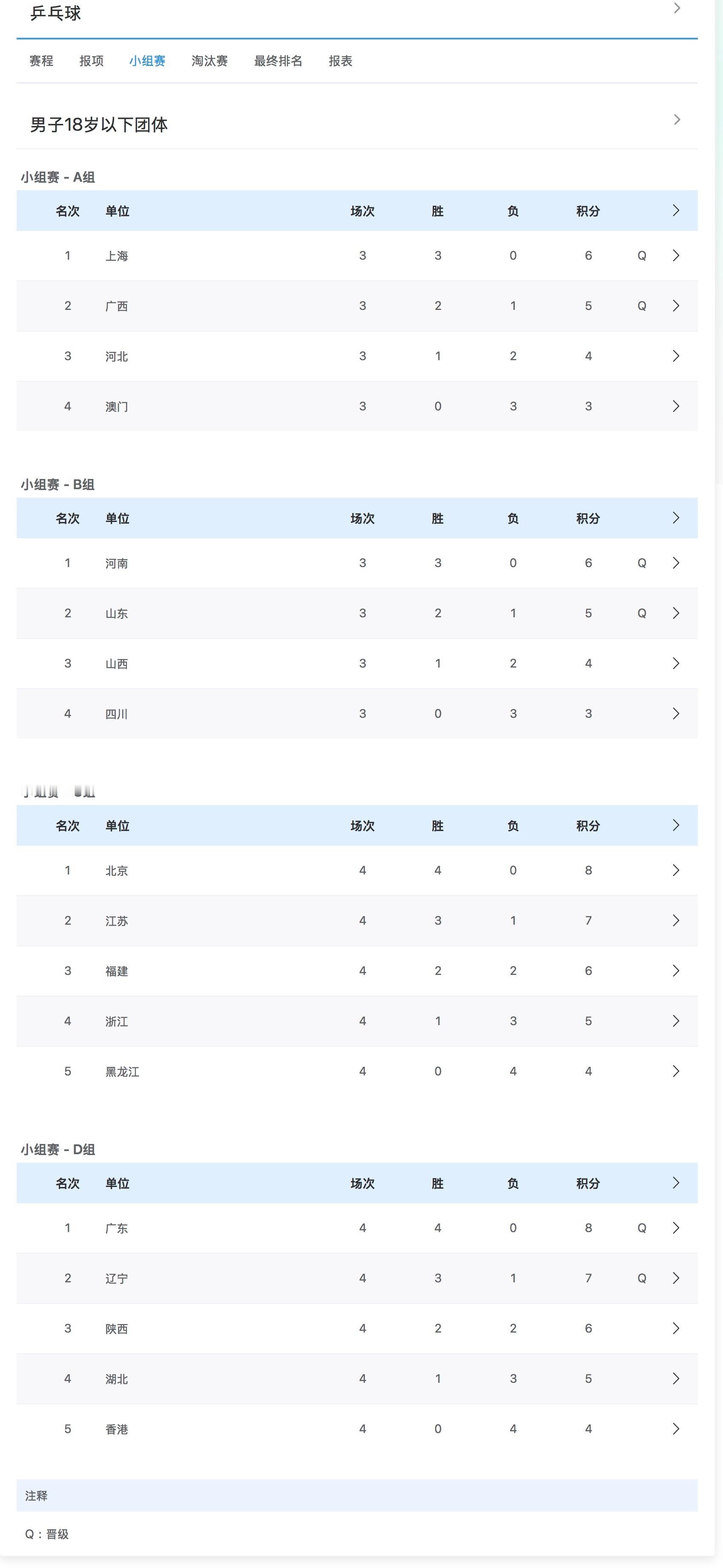 第十五届全运会 乒乓球青年组男子团体小组赛出线队伍已全部产生