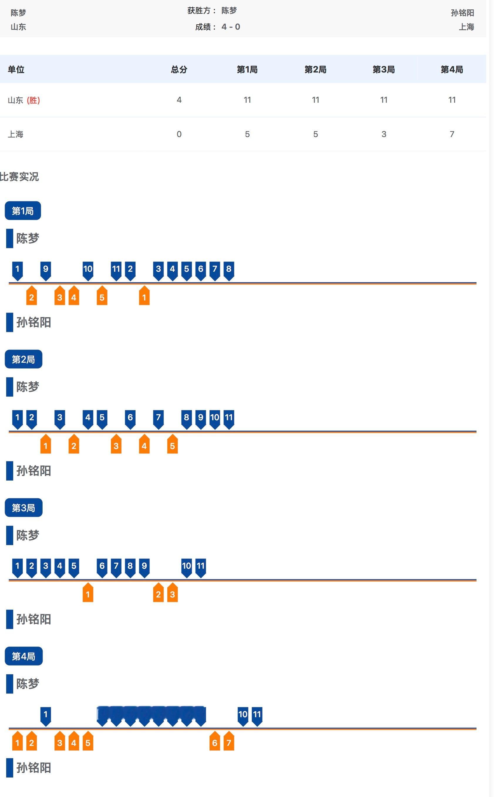 第十五届全运会乒乓球女子单打1/16决赛陈梦4比0孙铭阳