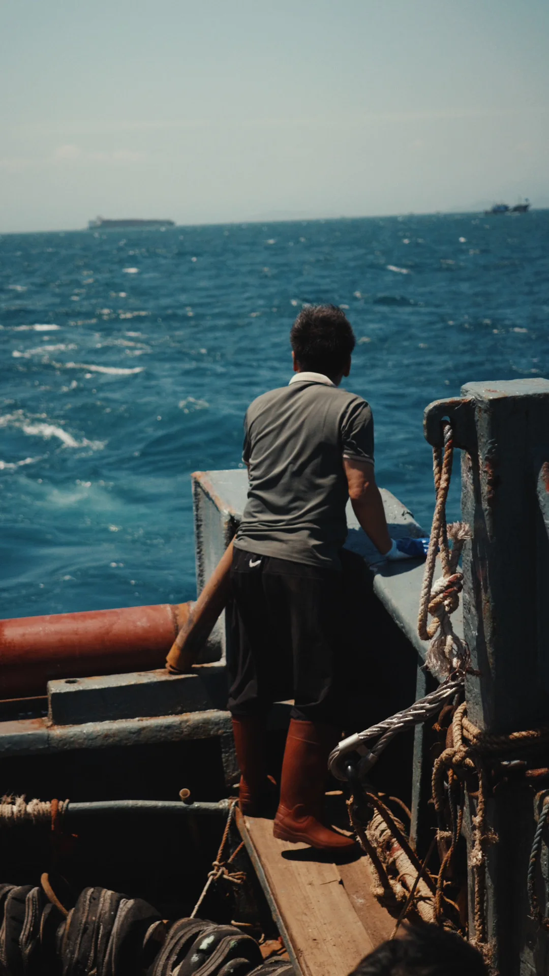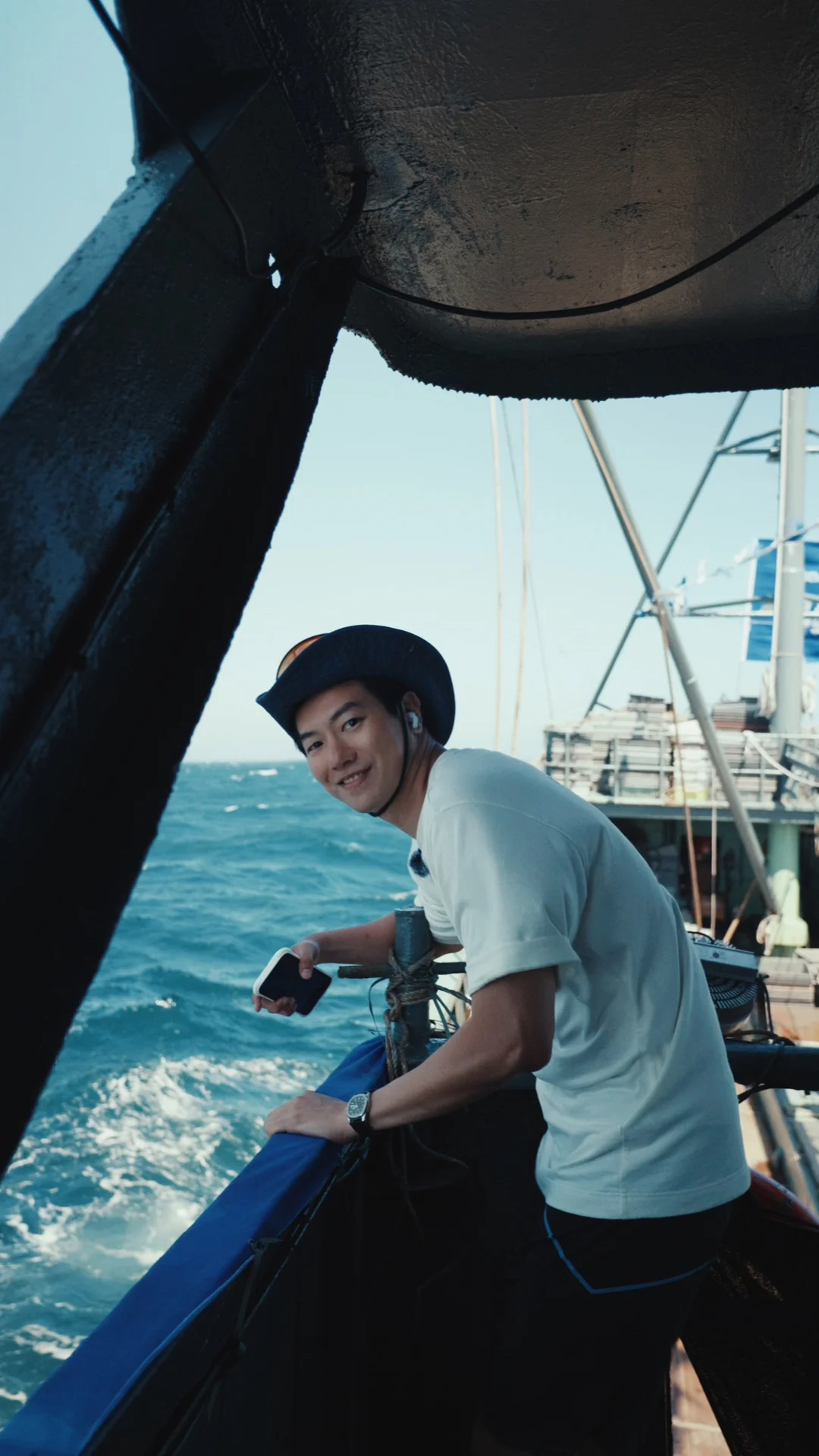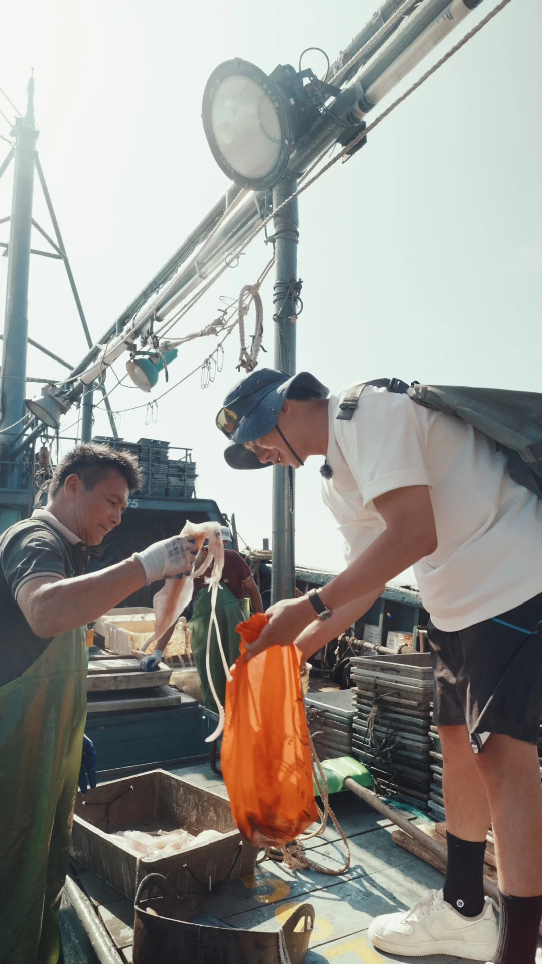 在驾驶舱用洋泾浜的闽南话跟船长聊天,下船带着大哥塞给我整袋的海鲜,有虾有鱿鱼,有肮咕哩(闽南语)有巴浪 船上的渔民大哥们生怕我会吃不饱,临走换船前还塞了特地留好的大鱿鱼当作伴手礼,送完我们他们讲要展开为期一周的无人区作业 大哥们纯朴、憨厚有些腼腆,但这段记忆会强势的待在我的脑中 等我的vlog