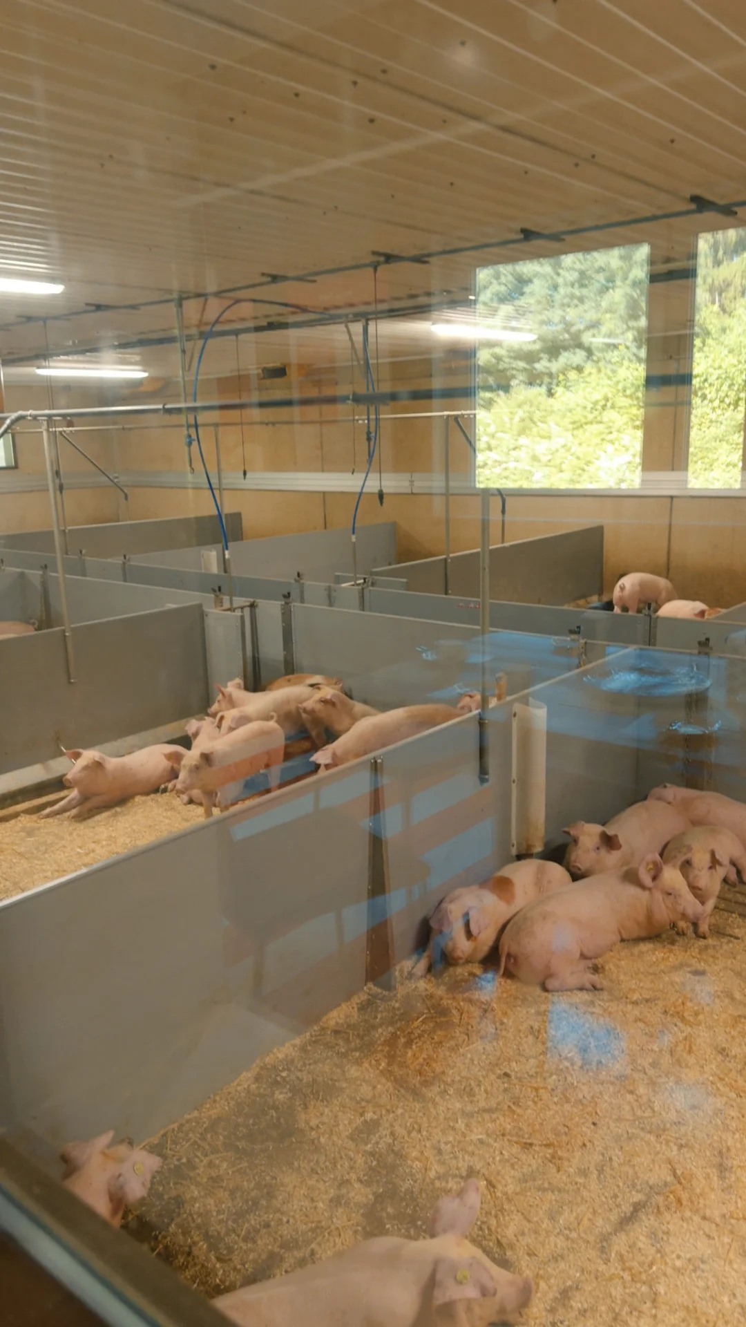 在这里,他们不剪猪的尾巴、不在饲料里加激素,还让猪喝到达「人类饮用水标准」的水。因为他们相信:动物住得舒服、心情好,就不会生病——也不需要打针。