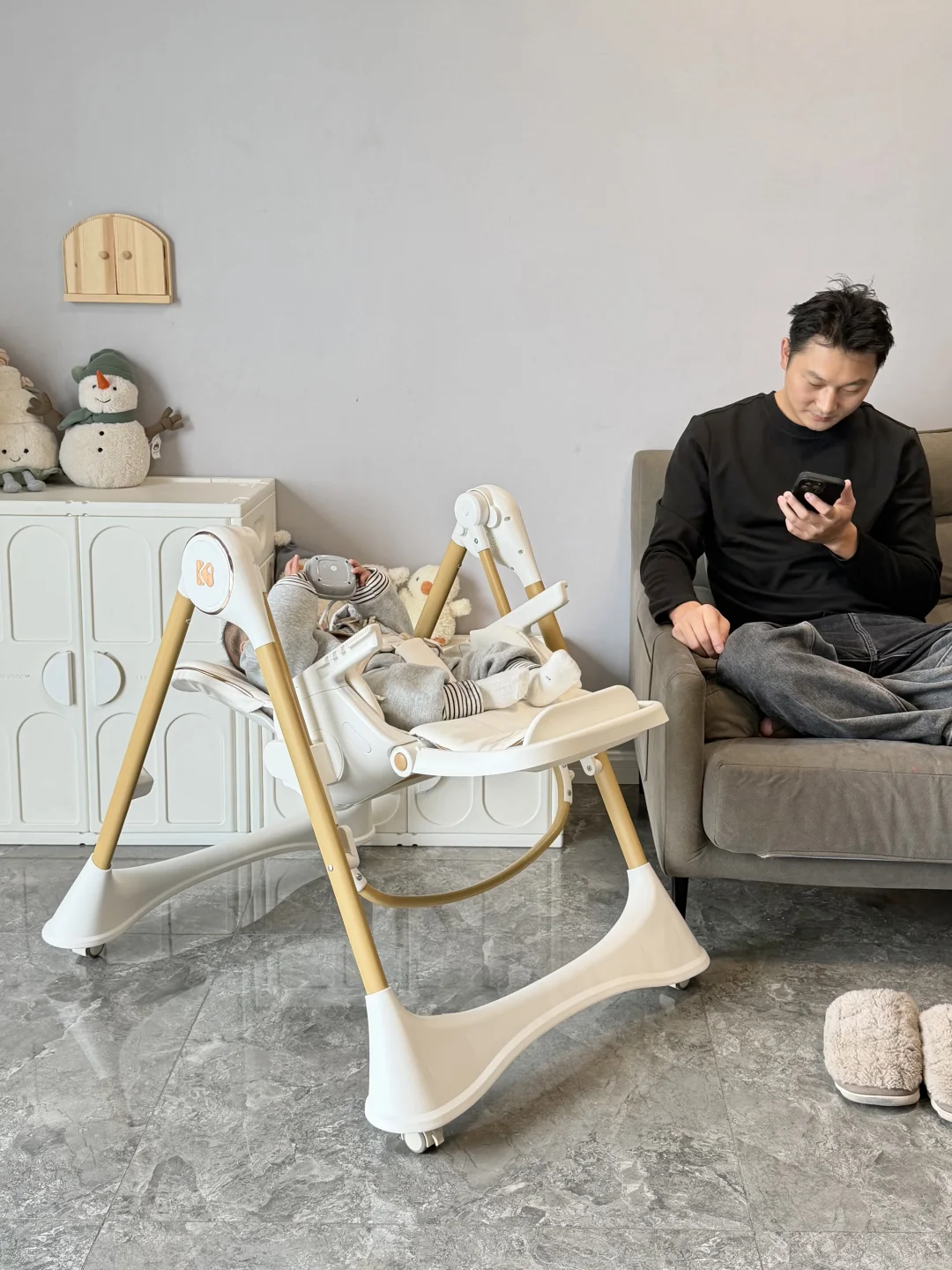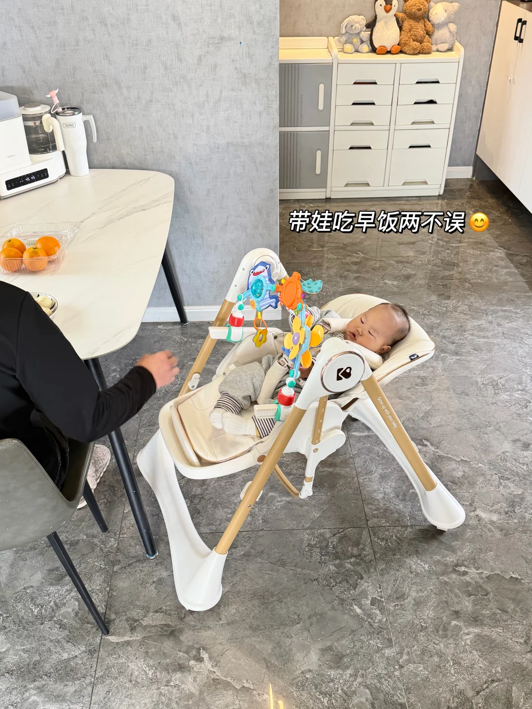 啊啊啊 娃能躺我是不会抱着🤣 主打一个能偷懒就懒一会儿 跟风入的宝宝餐椅 真是用一次感叹一次👇🏻 摇椅+躺椅+活动椅+餐边椅+移动小床 自带万向轮 想去哪就去哪里 一个人带娃时能随时随地放身边看着 特别是摇椅模式 娃闹腾时 直接放上面哄娃 摇一摇就睡着了💤 等娃大些了直接当餐椅 自主进食 和拼接大桌都很👌🏻 姐妹们可以放心入,一用一个不吱声!!