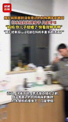 泪目!河南开封这场婚礼后,新郎的举动太戳心。婚礼结束本应洞房花烛,他却拉着新娘直奔医院,向无意识的母亲恭敬拜三拜。这新郎自幼没了父亲,母亲含辛茹苦养大他,却突发脑出血昏迷多年。 他白天工作,晚上照顾母亲,婚礼既是给女友交代,也是圆母亲心愿。之后他给母亲擦身倾诉,而新娘也全力支持,要带婆婆去北京求医。 很多人忙着生活,疏忽了亲情。可这对新人,在大喜日子仍记挂病床上的母亲,他们的孝顺让人动容。亲情是生活的根基,孝顺是最美的传承。愿这份坚守能唤醒奇迹。你身边有这样感人的孝顺故事吗?评论区聊聊。