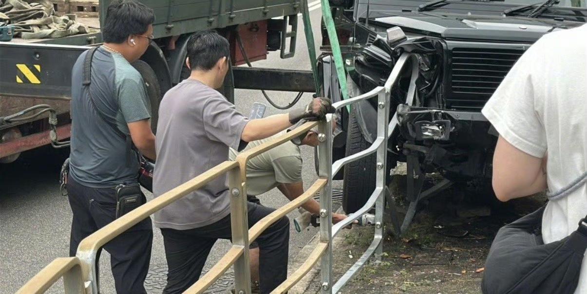 62岁知名导演,出车祸了!车祸现场画面曝光,太后怕了! 11月11日,据港媒报道,62岁的知名导演陈可辛,突然发生了车祸,他驾驶的奔驰越野车,在香港的街头被撞得面目全非,甚至还将人形护栏卡在了车头里面,画面让人看了十分的担心后怕。 不过,好在陈可辛驾驶的车子质量过硬,虽然车子的车头损毁严重,但陈可辛却只受了一点点小伤,身体没有什么大碍。 仔细看了一下,陈可辛的这辆座驾可谓是价值不菲,是奔驰G500的敞篷版,全球限量200多台,国内车源也不过20台,售价高达300万。 虽然陈可辛的爱车在车祸中碰了个稀巴烂,车子扭曲变形,零件散落一地,但好在他人没什么事,虽遭遇惊险,最终都化险为夷,也算是因祸得福,有惊无险的躲过一劫了。