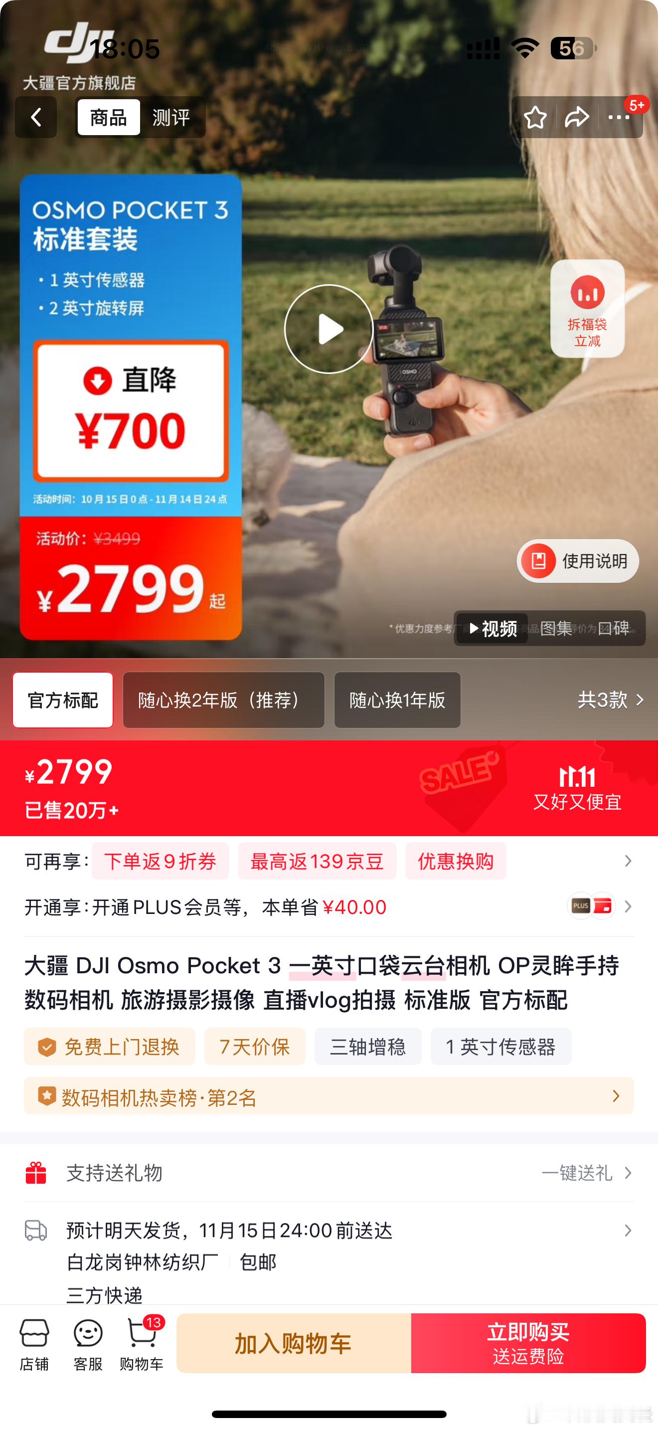 作为数码博主还是比较喜欢关注相机之类的目前大疆系列的相机在双十一都有降价我觉得之前觉得贵的朋友可以考虑一下!