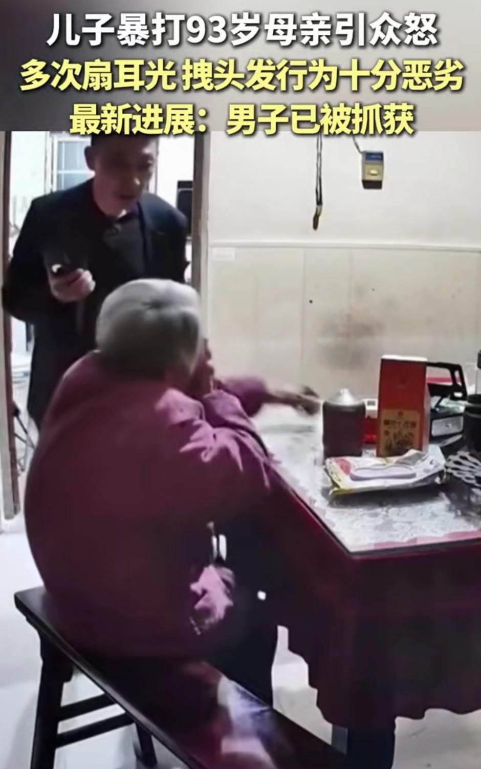 这个儿子看上去文质彬彬的,为什么动手打90多岁的老母亲。这个老妈妈太可怜,辛苦养大的儿子,下死手打她。这个儿子煽完老母亲的嘴巴子,又把老母亲按到地上拽头发,拳打脚踢。老母亲哭的那个惨呐,老母亲的儿子真是大逆不道,伤天害理。