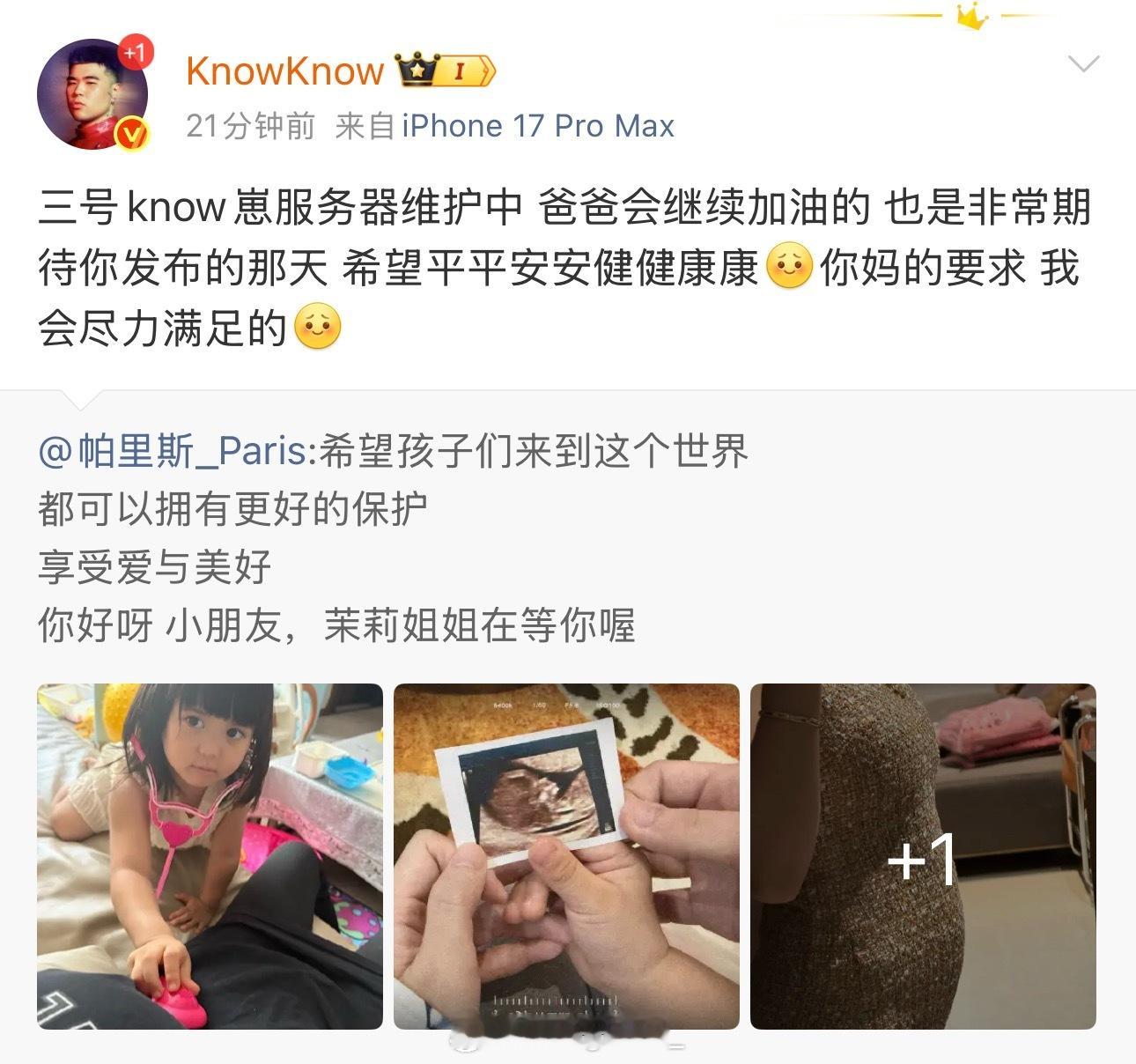 哇!KnowKnow和老婆帕里斯官宣有二胎了KnowKnow的第二个宝宝!祝福!