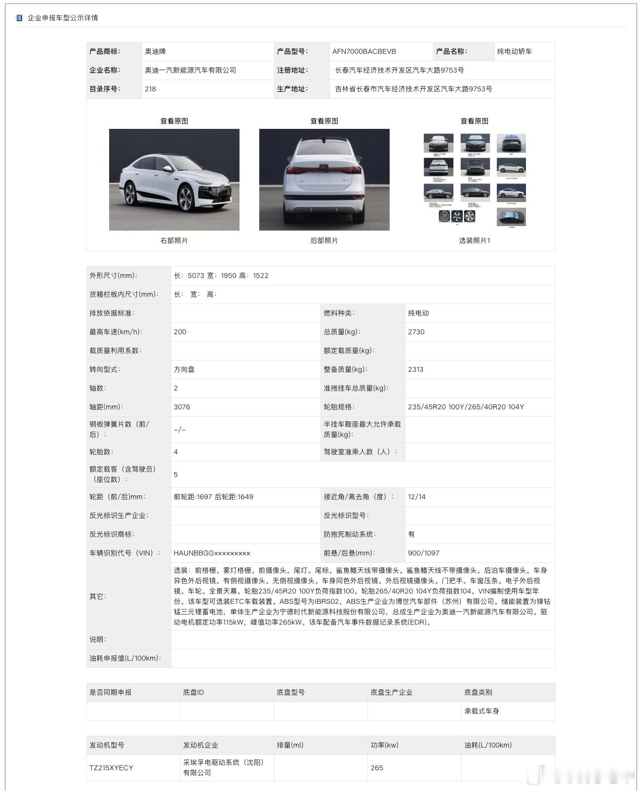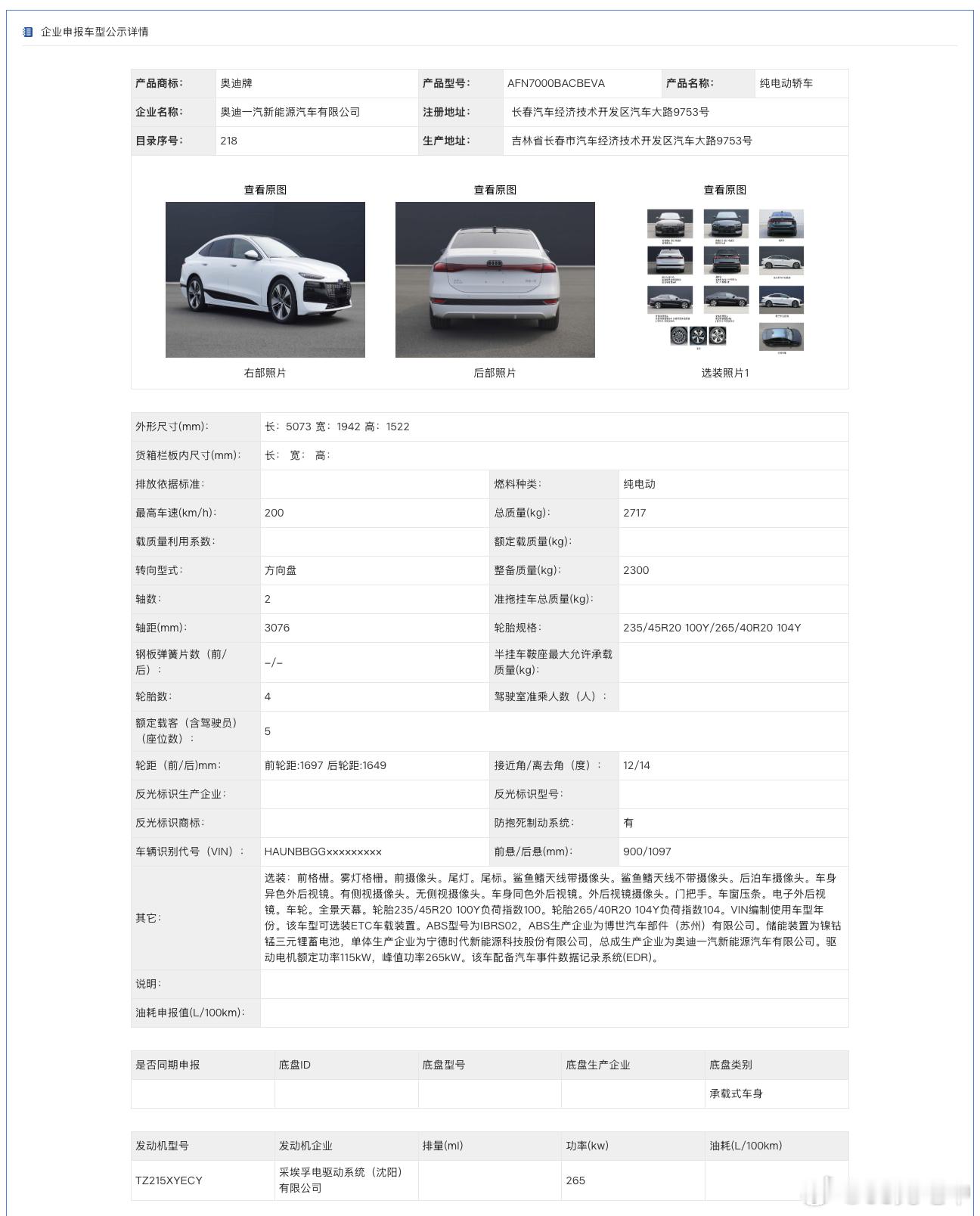 奥迪 A6 e-tron 上工信部目录了,2 个版本都是单电机的,看了下区别只有带华为乾崑智驾和不带的区别,整备质量差 13 kg。感觉奥迪稍微有点不太讲究,居然整个白色 A6 申报工信部……