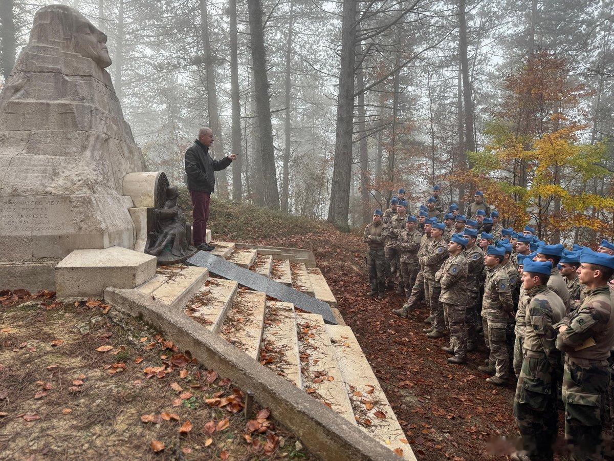 法国圣西尔军校学员今日踏访第一次世界大战“埃帕尔热岭”古战场——1915至1917年间,法德两军在此激战,阵亡将士逾十万。圣西尔军校地位等同美国西点、英国桑赫斯特,学员每年循例赴各大战场巡礼,以史为训。