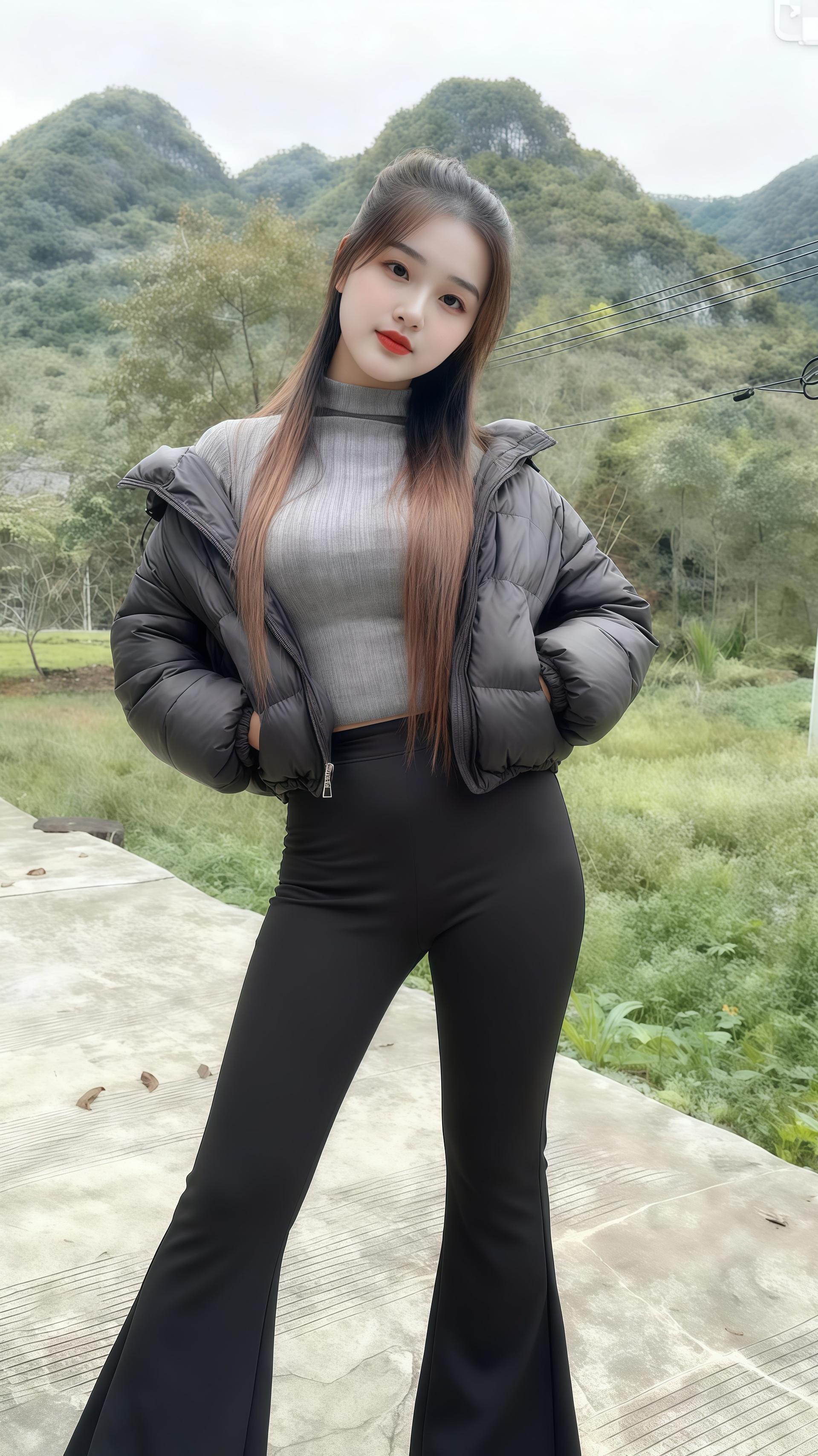 街拍小姐姐穿搭 女神范 好身材好气质 紧身牛仔裤 山里姑娘