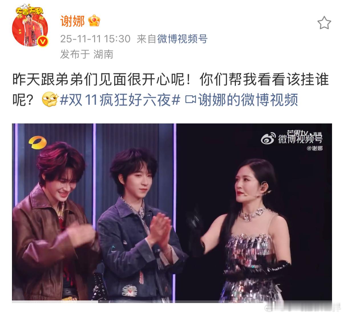 这次谢娜和时代少年团的互动太可爱了!她在发博求助挂谁的时候简直就是全场焦点,大家都在等她下次“挂谁”呢!这种欢乐的互动真的是超级有趣!