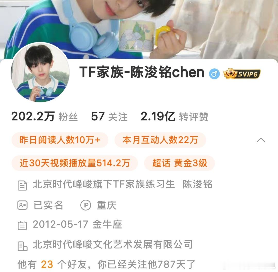 其实那时候还在二楼三楼 觉得这个小孩好好看啊咋这么萌 还在讨厌小四楼的时候就偷偷关注了这个小孩 待在三代的时候去看了四代的物料 特别有好感 把小浚铭当成花瓶溺爱了 后来慢慢的淡楼了 有一天凌晨点进考核听着陈浚铭的瞬在宿舍床上哭 直接把我拉回来了 好感慨啊我好像也就一段时间没看 怎么能这么争气呢孩子 我宝宝真的是特别好的孩子