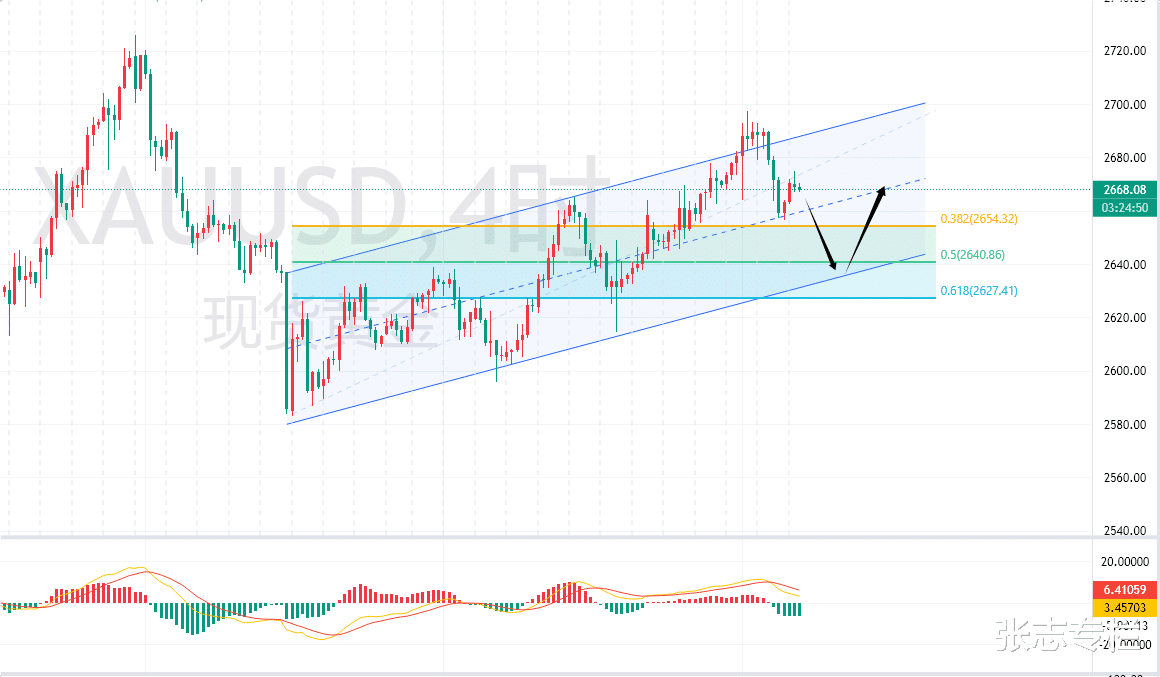 周五非农之后,周一开始大跌,这波的行情最高点是2698,昨天的低点是2656,你要问黄金这就反弹结束了吗?我只能说,有可能,但是不确定!