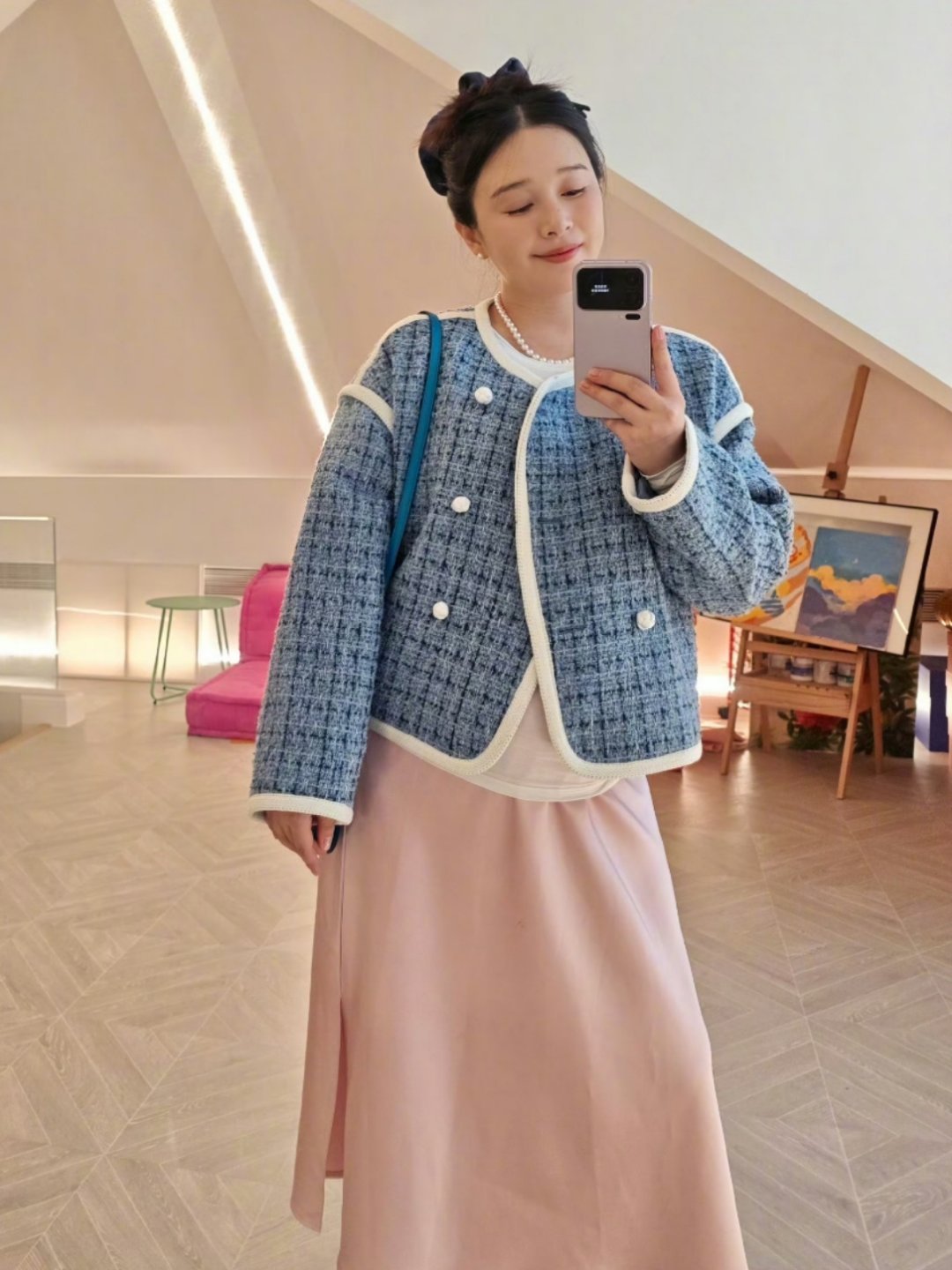 刘亦菲把死亡玫粉穿出了定制款的感觉,这种颜色普通人穿上分分钟黑三度,她居然能穿出