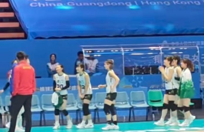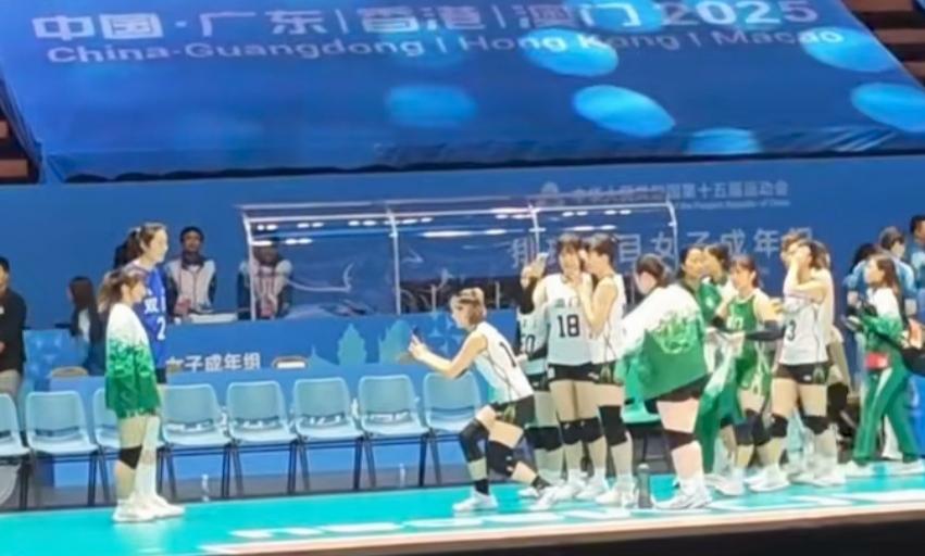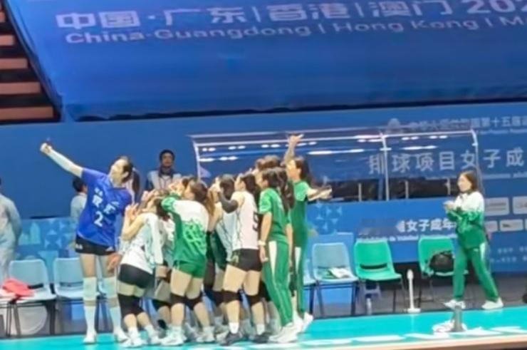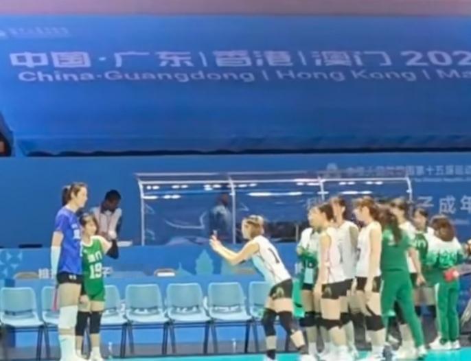 赛后与朱婷合影,成了好多球队不约而同的选择,河南队结束小组赛第四场比赛之后,也不例外,澳门队的小队员们纷纷请求与朱婷合影! 对于朱婷而言,当然没有问题,因为她就是国际巨星,本届全运会上最有影响力的运动员! 观众们也再次看到了,小队员合影后开心到起飞的一幕! 这场比赛,实力差距比较大,河南队3:0轻松拿下了比赛。 从澳门队2号小姑娘的身材可以看出,她们应该不是职业球员,打得也很顽强,这个小姑娘在比赛最后时刻,发球直接得分了! 河南队取得了四连胜,继续高歌猛进!