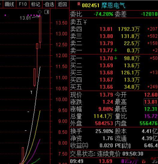 光伏其实不算特别强但是防止分歧转一致,福建强在二波中,还是要做波段感觉冲高回落是有可能的,这儿抱团的高低切我感觉还是光伏看能不能走出来,毕竟集合一字板最多,现在还有3个连板,最主要庄股这个摩恩电气还是被资金接住了,昨天是存储杀尾今天锂电抱团杀开盘,虽然天际股份还是不错,补涨国晟叠加了光伏代表性不大,澄星股份,清水源都是大跌的,振华股份天风吹的也是锂电系的上游也阴了。目前来看开盘情绪有点炸,跌多涨少,资金还拉防守的医药了,现在强度医药是第一的。