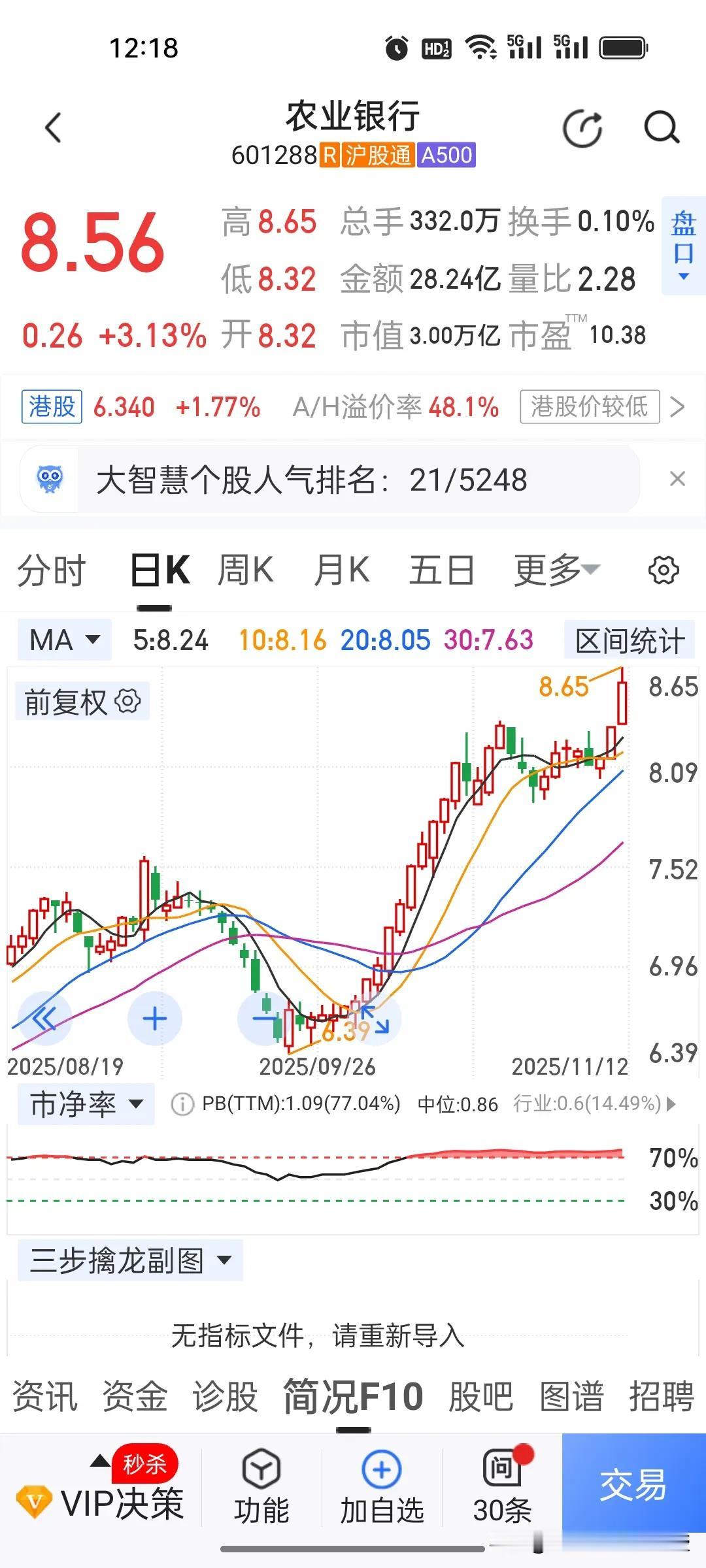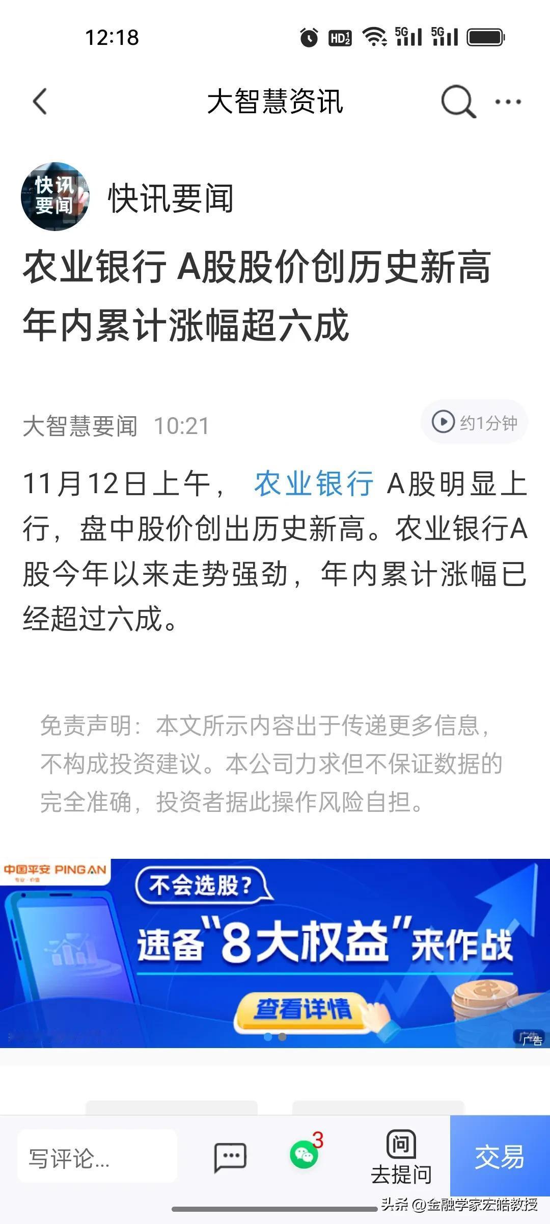 谁说巴菲特的投资思路不适合中国?今天农业银行再度创下历史新高,市值达到3万亿,超越了工商银行,2010年7月15日收盘价只有2.70元,如今8.56元的价格,15年来上涨了3倍,今年以来也涨了67%,这样的长线投资还是跑赢了散户的追涨杀跌,巴菲特也是长线投资者,只做自己看得懂的“老登”股,60年投资收益超过5万倍。 中金公司前段时间说过,中国现在的市场已经跟十年前大不相同,主力的操盘思路也发生了很大的变化,未来我们的A股会越来越成熟,制度会越来越健全,在慢牛行情下,价值投资,中长线投资会渐渐成为市场主流。