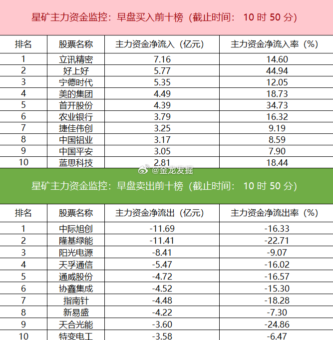 【主力资金监控:中际旭创遭主力抛售超11亿元】今日早盘主力资金流向呈现明显分化。医药、工业金属、银行等板块获主力净流入,而电新行业、电力设备、通信板块则成为资金集中流出方向,其中电新行业单板块净流出额已超105亿元。个股方面,立讯精密获主力资金净买入超7亿元,位居榜首;好上好、宁德时代、美的集团等亦获资金青睐。相反,中际旭创遭遇大幅净卖出,金额超11亿元;隆基绿能、阳光电源、天孚通信等资金净流出额居前。