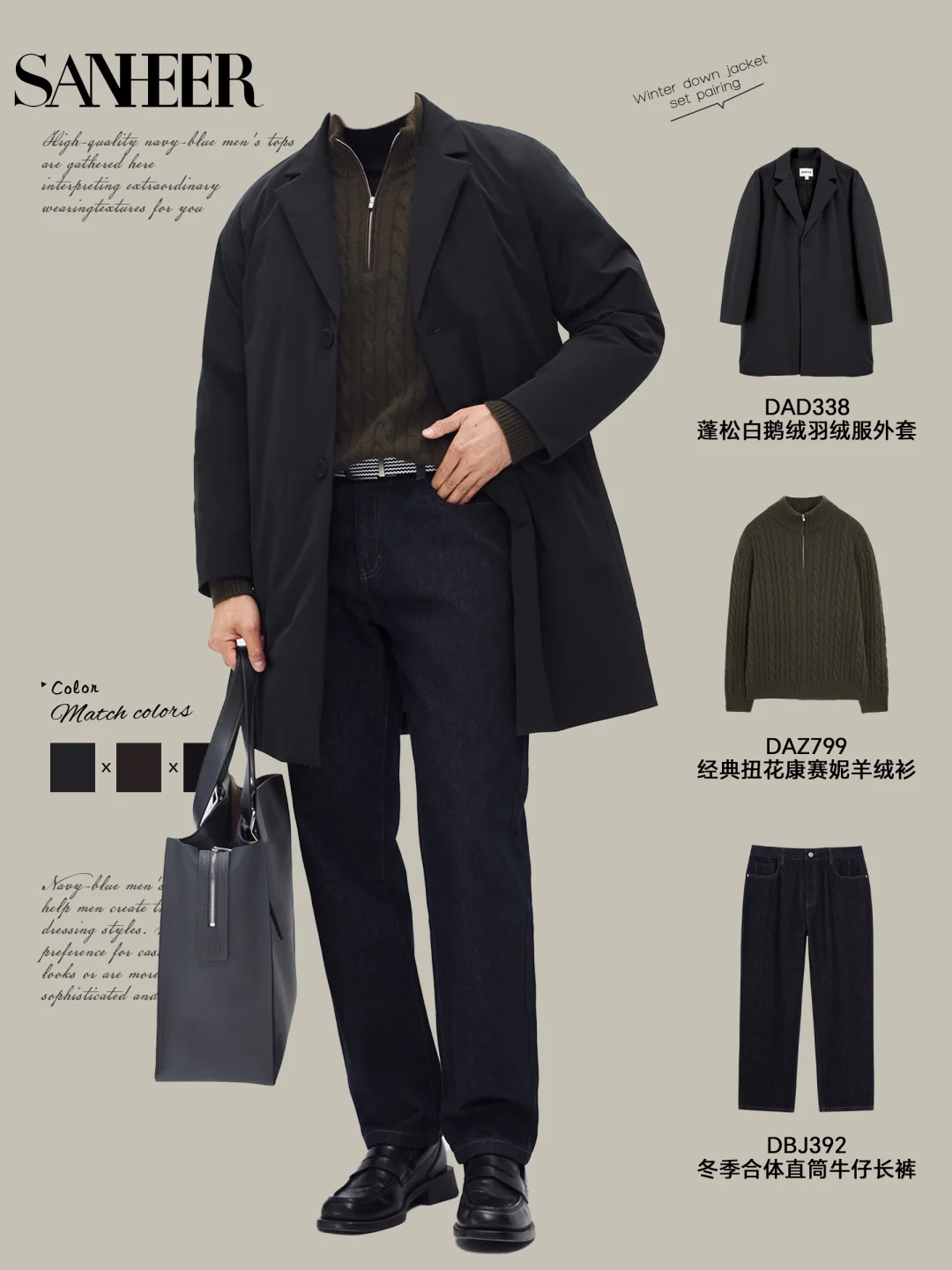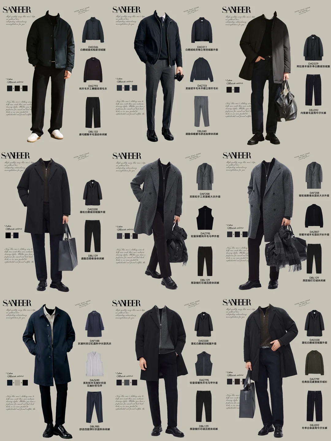 黑色厚外套+高领毛衣+卡其裤+乐福鞋