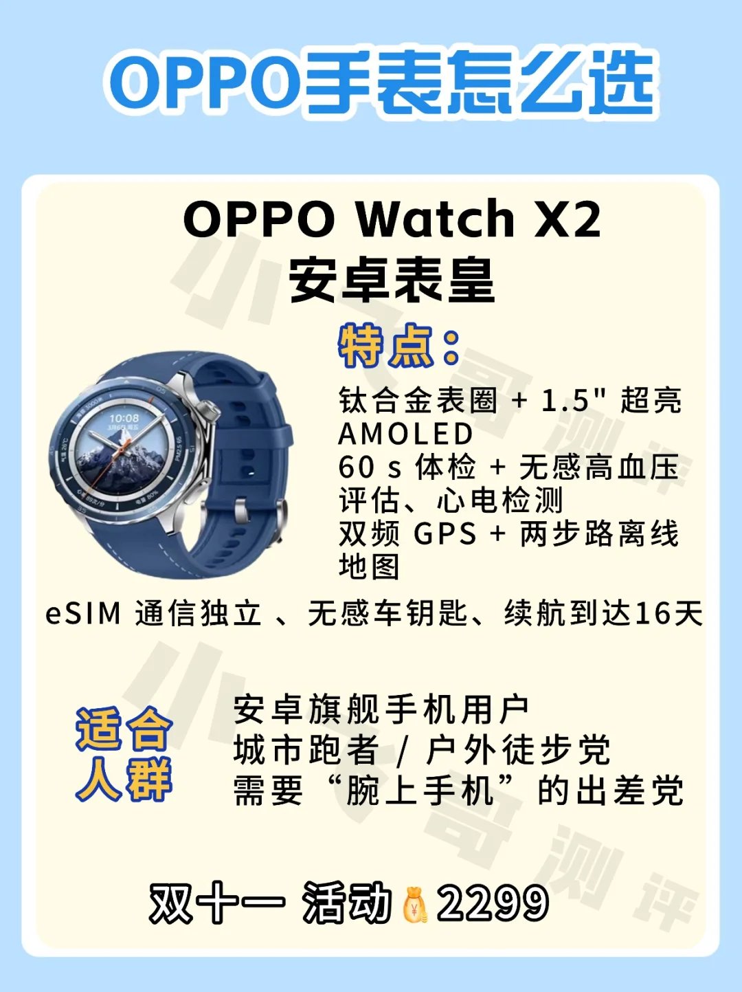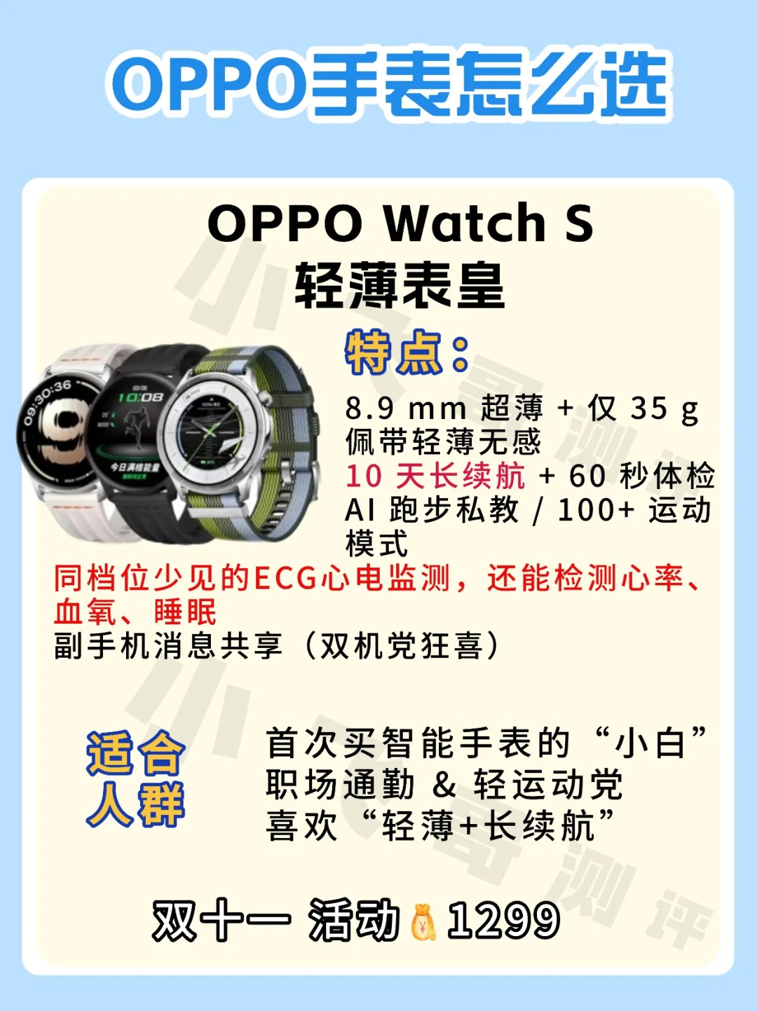 宝子们,双十一大促来袭,想入手智能手表的宝子一定要看看下,特别是双十一大促来袭,今天给大家分析一下超值得买的OPPO手表,一定有你中意的一款: