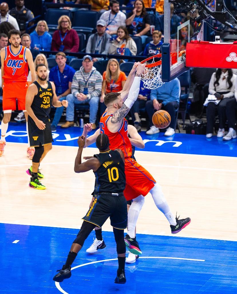 雷霆主场对阵勇士今日NBA常规赛中迎来西部焦点之战雷霆主场迎战勇士,比赛刚开始,双方都很快进入状态,比分交替上升,一路战至23平。比赛进攻端,亚历山大通过挡拆频繁寻找错位机会,无论是撤步跳投还是突破终结都相当稳健,还多次吸引协防后为队友创造机会。霍姆格伦成为关键一环,面对单防屡次得手,面框进攻和外弹三分全都奏效,全场9投全中,效率极高!全队进攻内外衔接流畅,第三节更是单节轰下44分,直接拉开分差。防守端,雷霆采用针对性的错位策略,哈滕放空追梦专注协防,霍姆格伦有效限制了对手的内线强攻,华莱士则全程贴身盯防库里。全队轮转积极,通过联防与协防牢牢限制住勇士的进攻核心。本场比赛亚历山大率领雷霆成功取胜,以11胜1负稳居联盟第一,完美展现了卫冕冠军的实力与底气!