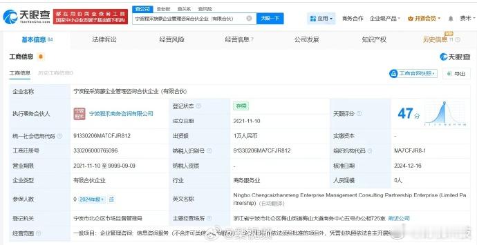 【】 11月12日,据媒体报道,,她在朋友圈表示,“智能终将从语言迈向物理世界。我正在Xiaomi MiMo,和一群富有创造力、才华横溢且真诚热爱的研究员,致力于构建这样的未来,全力奔赴我们心目中的AGI。”天眼查App显示,罗福莉与DeepSeek创始人梁文锋仍共同关联宁波程采旃蒙企业管理咨询合伙企业(有限合伙)。该合伙企业成立于2021年11月,执行事务合伙人为宁波程禾商务咨询有限公司,出资额1万人民币,经营范围为企业管理咨询、信息咨询服务、企业管理。合伙人信息显示,该合伙企业由梁文锋、管金燕、罗福莉等共同出资,其中梁文锋出资比例为96%,罗福莉出资比例为0.1%。