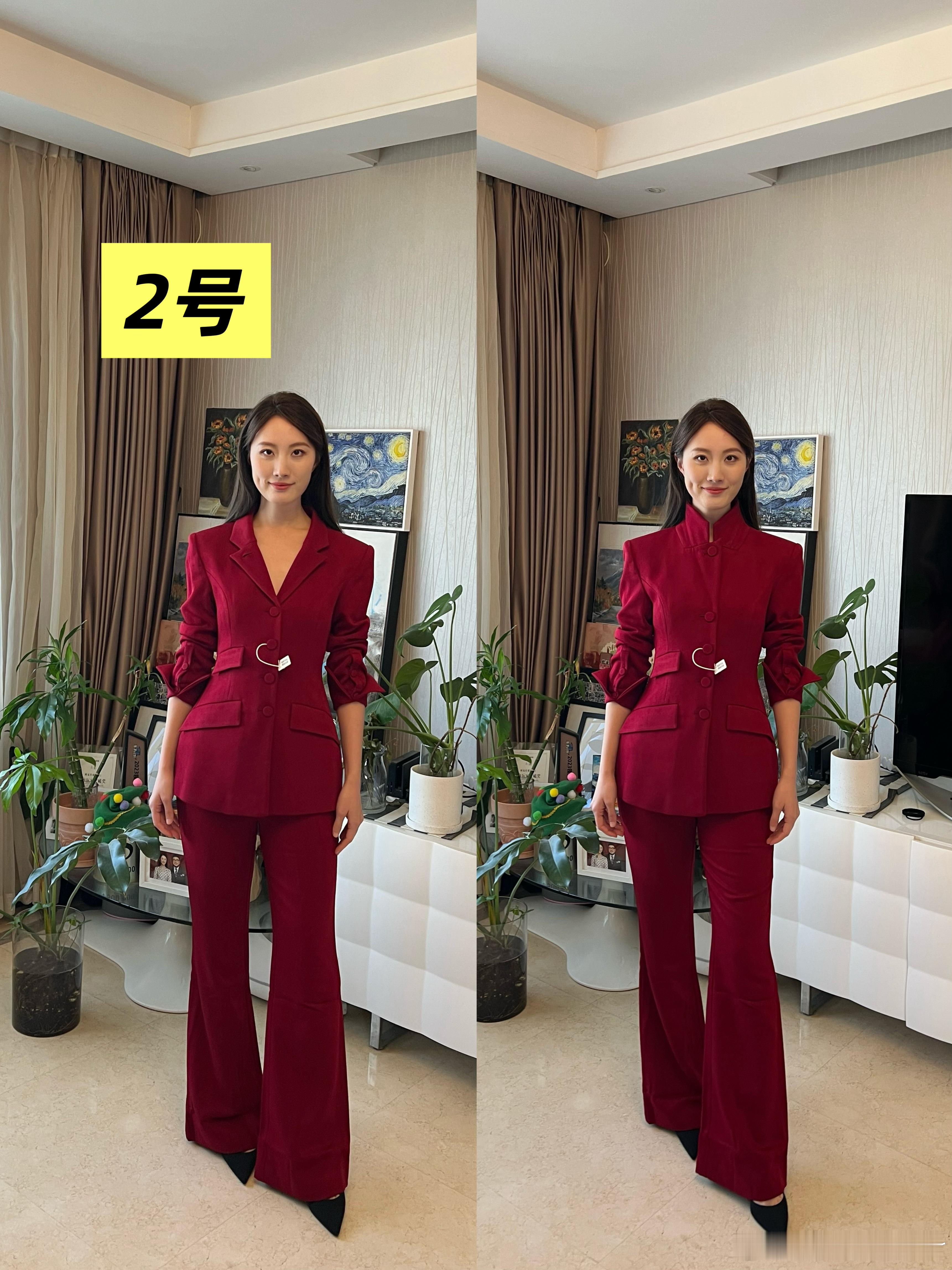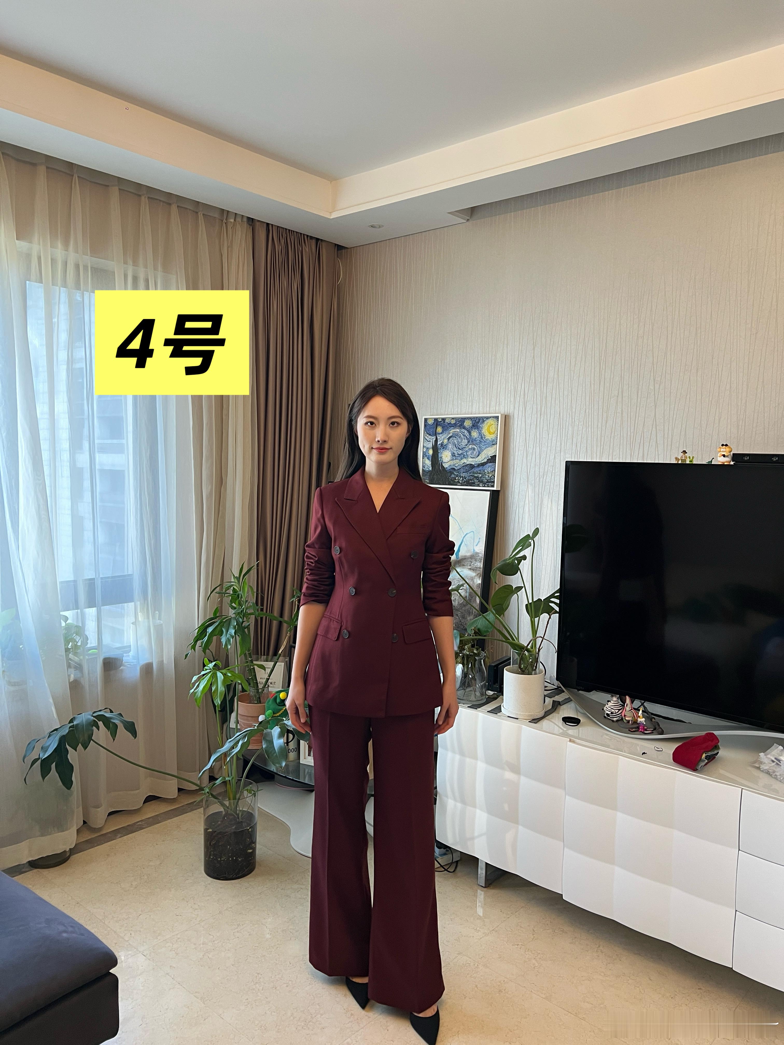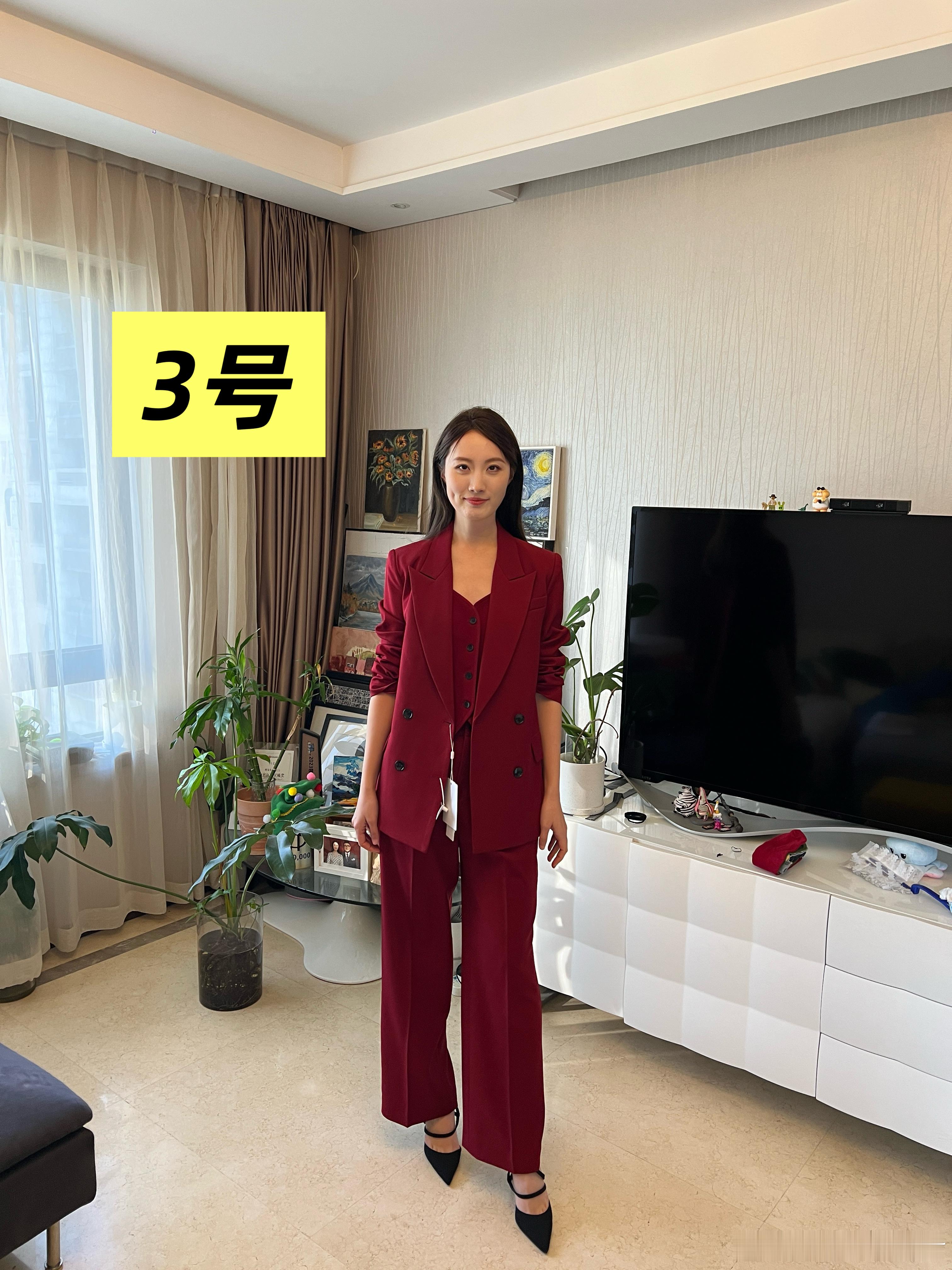 大家来帮忙选个西装吧~下周主持颁奖盛典准备穿一身红1的红很正 实物很有气场2很修饰身材 比较精神3是女明星同款三件套4双排扣➕深红色 偏稳重一些你们觉得哪个好?