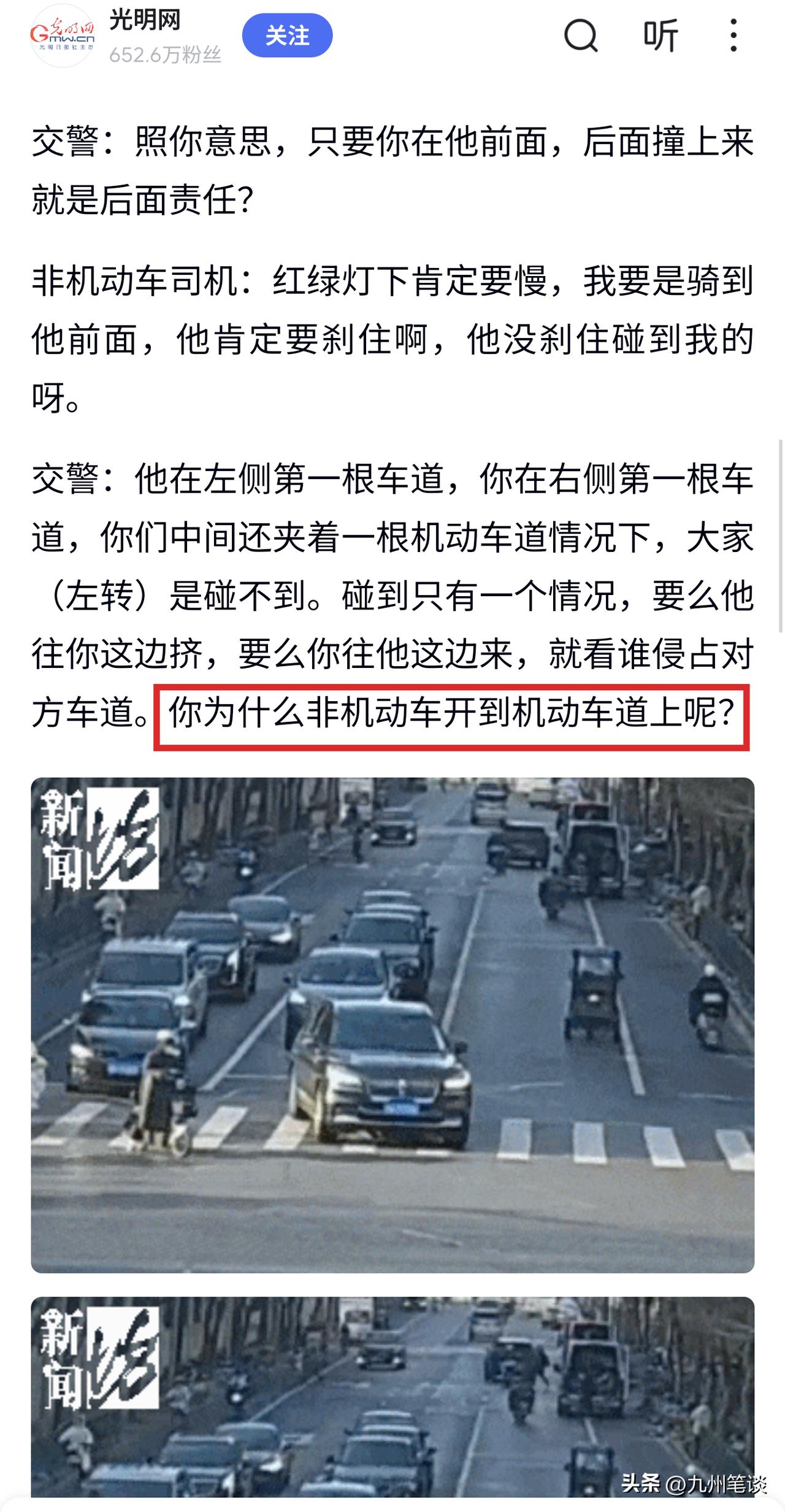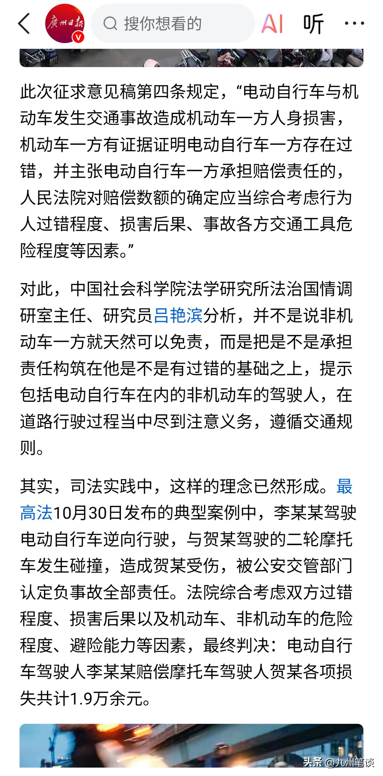 谁违法,谁负责? 电动车与机动车发生事故,电动车该不该负责?最高法院向社会公开征求意见! 谁有错,谁就好为自己的行为负责! 不管是机动车还是非机动车,以及行人,都要为自己的违法行为负责,承担该承担的责任。 上海、广东等地,就对电动自行车、行人违法进行责任划分,该负全责的就要负全责,不会因为非机动车作为弱势群体就可以减轻责任或不担责。 那么,同样的问题来了。 如果机动车在非机动车道上违停,被非机动车撞到,那么非机动车是否需要担责或者担主要责任或者全责呢?只要非机动车不是故意的。 毕竟按照交通规则,机动车是不应该出现在非机动车道上的!即使机动车借道右转,也要不能影响非机动车正常行驶,更别说直接违停了。 如果机动车只算违停的责任,又不合理了吧?