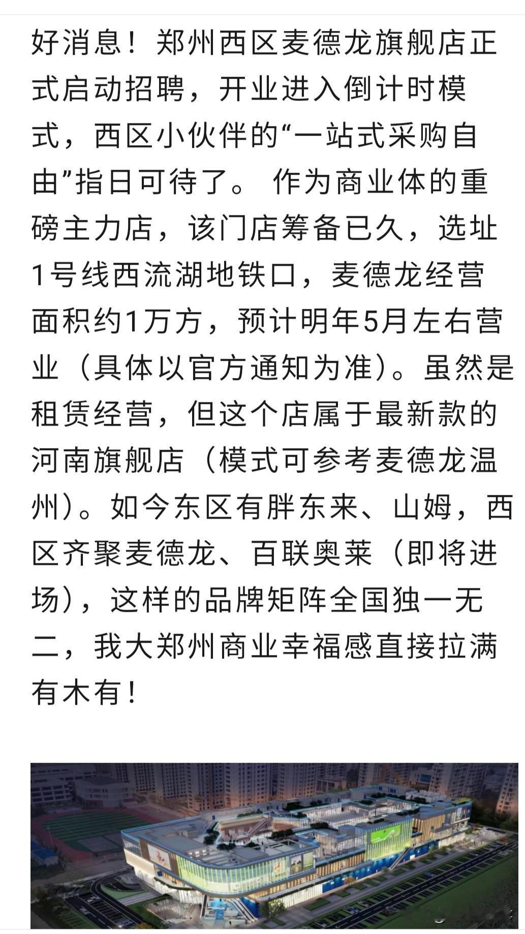前一段时间,我在头条上发文说,位于河南省郑州市中原区建设西路与凯旋路交叉口(西流湖地铁站A口)附近的麦德龙店正在日以继夜的紧张施工中,有望会在官方公布的时间内(2026年1月)准时开业。有不少网友在评论区表示怀疑。认为到时间根本不可能开业。这不,今天又看到麦德龙已经进入开业倒计时了!已经开始进行招聘信息发布了(如图)!还怀疑吗?[捂脸]