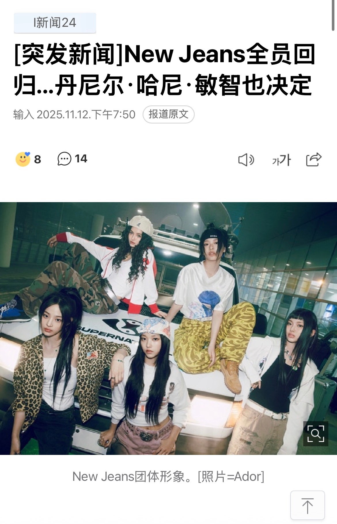 以下是NewJeans的完整声明。大家好,这里是minji、hanni和dani