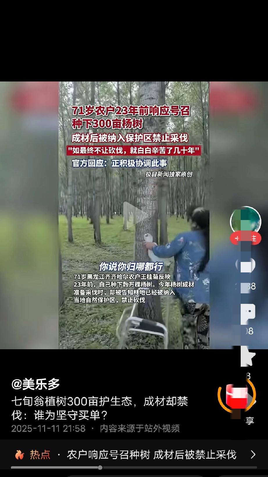 我都怀疑80后老了都领不到养老金[灵光一闪] 树木成材后无法砍伐,农户几十年心血白费,必须照价赔偿!