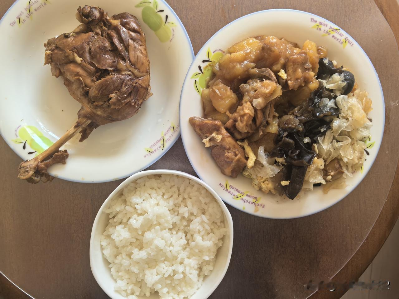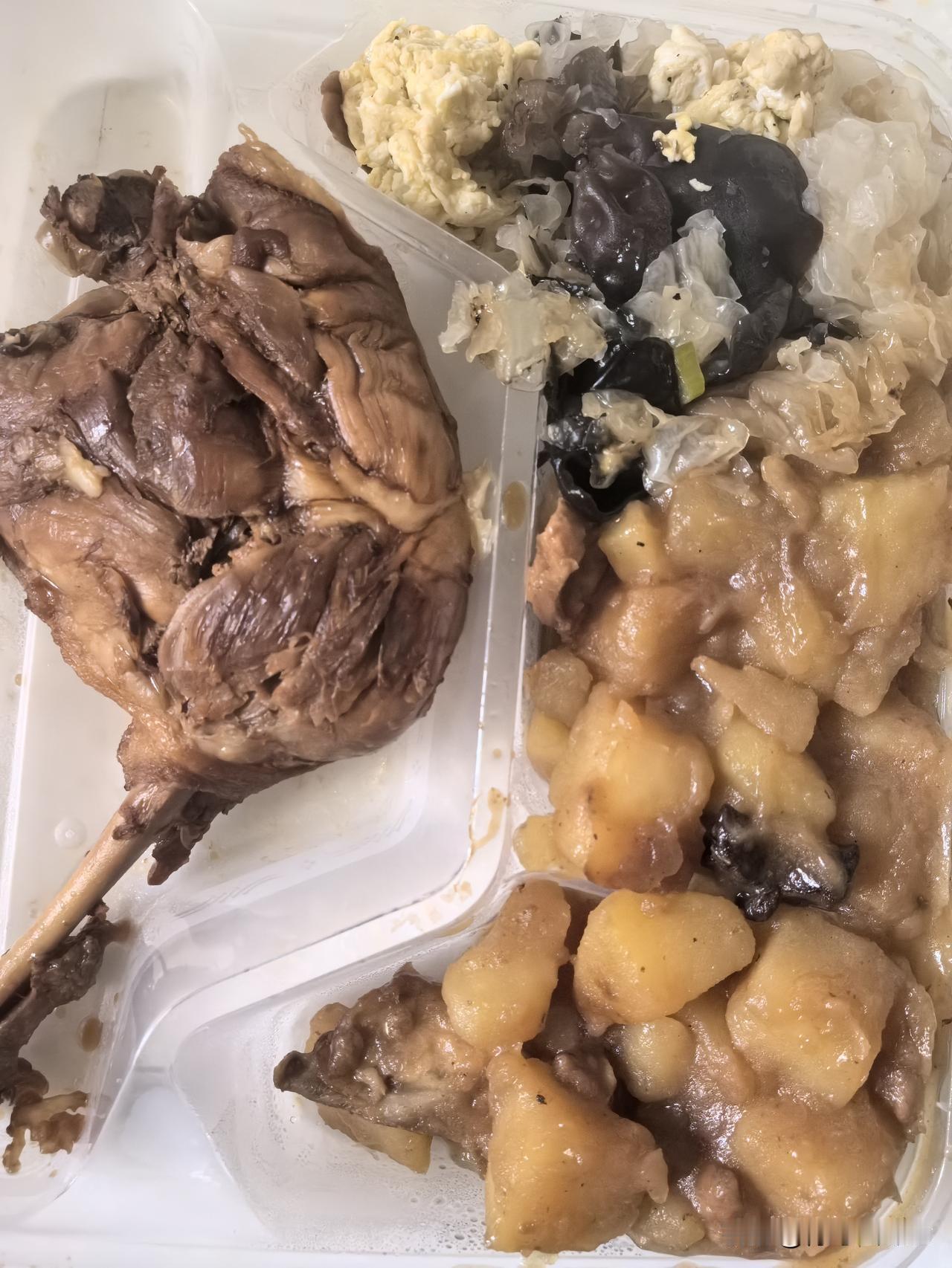 “大美崂山,魅力中韩”,我一进老年食堂大门,就看到老年食堂里布置得焕然一新,对面墙壁上贴着这八个大字,让我感到了满满的幸福感。 好久没来老年食堂打饭吃了,我都不知道应该怎么样打卡了。 我拿出不锈钢提盒,想递给师傅,师傅说:不需要你的提盒,我们这里有统一的饭盒给你打饭。 师傅按照我挑选的菜给我打到饭盒上:一荤两素分别是:烧鸭腿,鸡块炖土豆,银耳木耳炒鸡蛋, 师傅问我要什么主食?我喜欢吃米饭,不喜欢吃馒头,所以,就要了一盒米饭。 一荤两素一米饭,我用社保卡直接交费。 崂山区补贴4元,我自己只交6元。 这些饭,我如果自己在家里做,6元钱能做出来吗?更不用说还要赔上时间,精力等。 所以说像我这样懒得做饭的老年人,去社区吃老年食堂最划算,我怎能不感到幸福呢? 这些饭我拿回来,一顿根本吃不上,吃两顿还行。