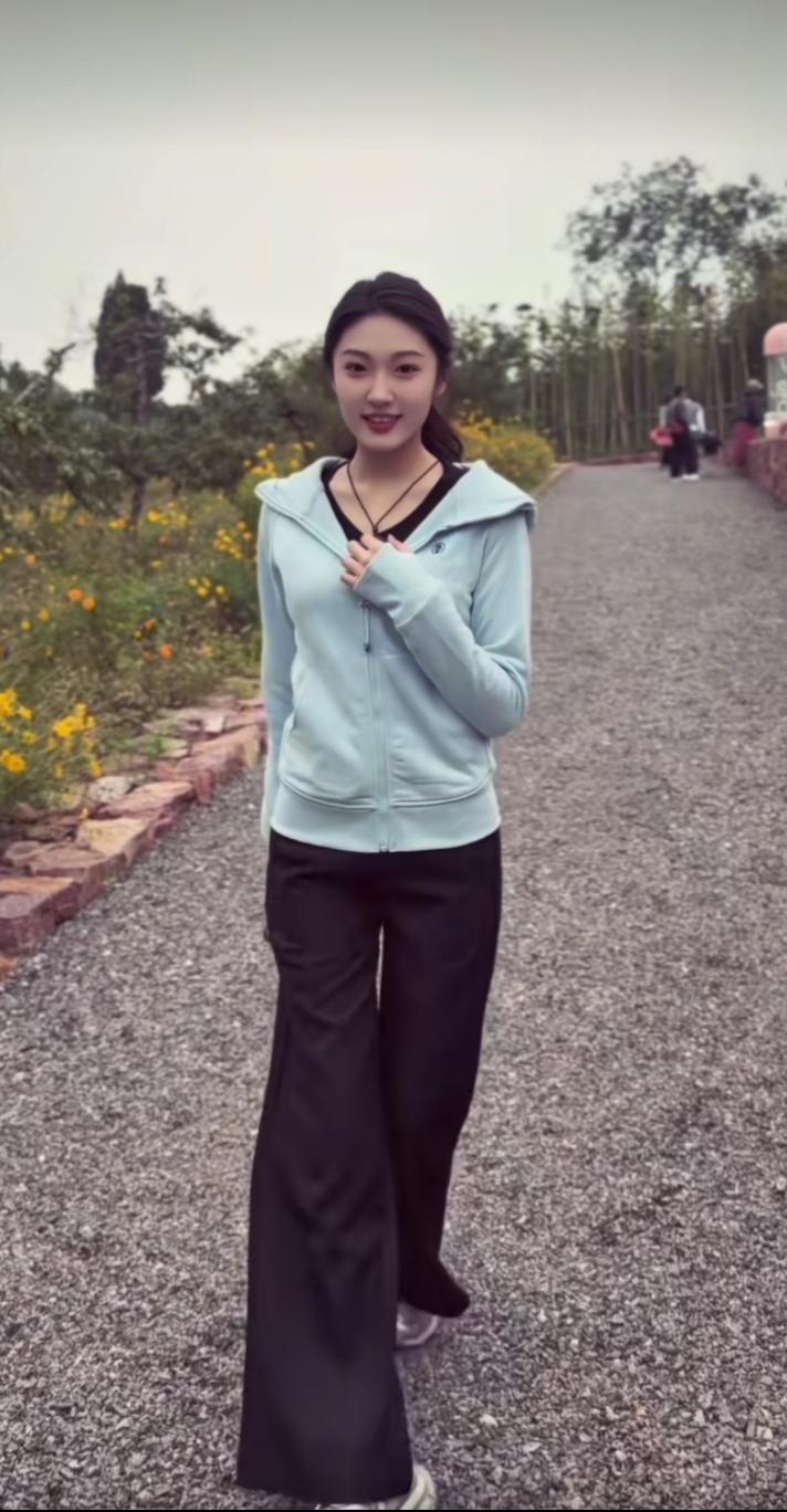河南清纯甜美美少女秋日户外休闲穿搭。