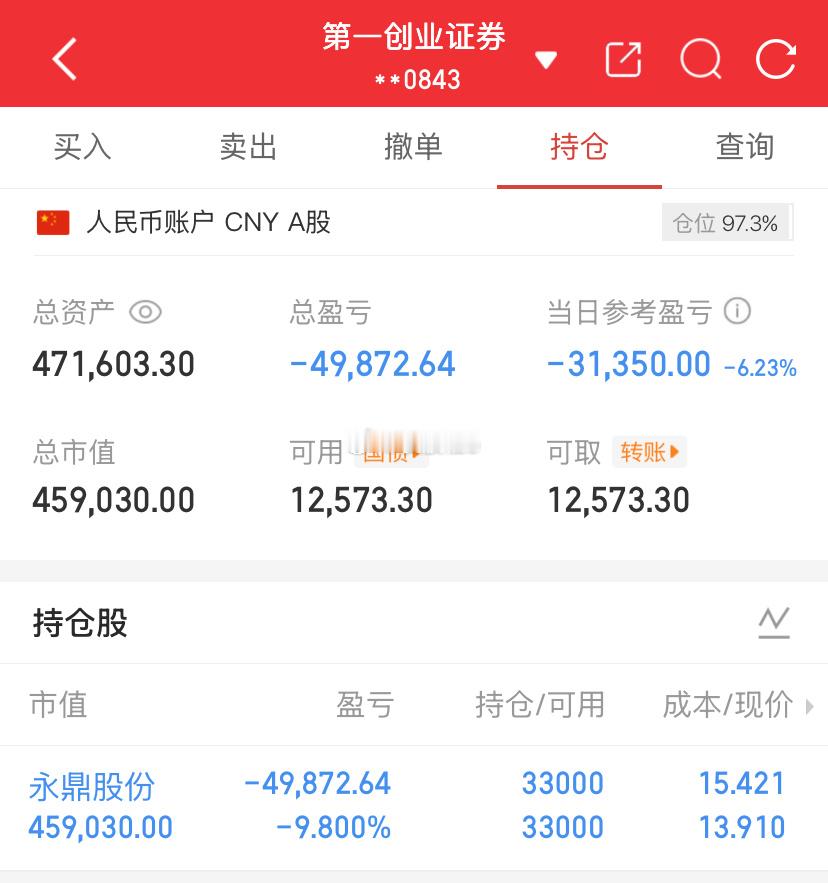 爱股程炒股日记40w本金挑战一年翻5倍,第( 50 )天!总资产:47w当日参考盈亏:-3.1w目前持有:永鼎股*特别声明:本文仅是个人观点及操作不构成投资建议,仅供参考!