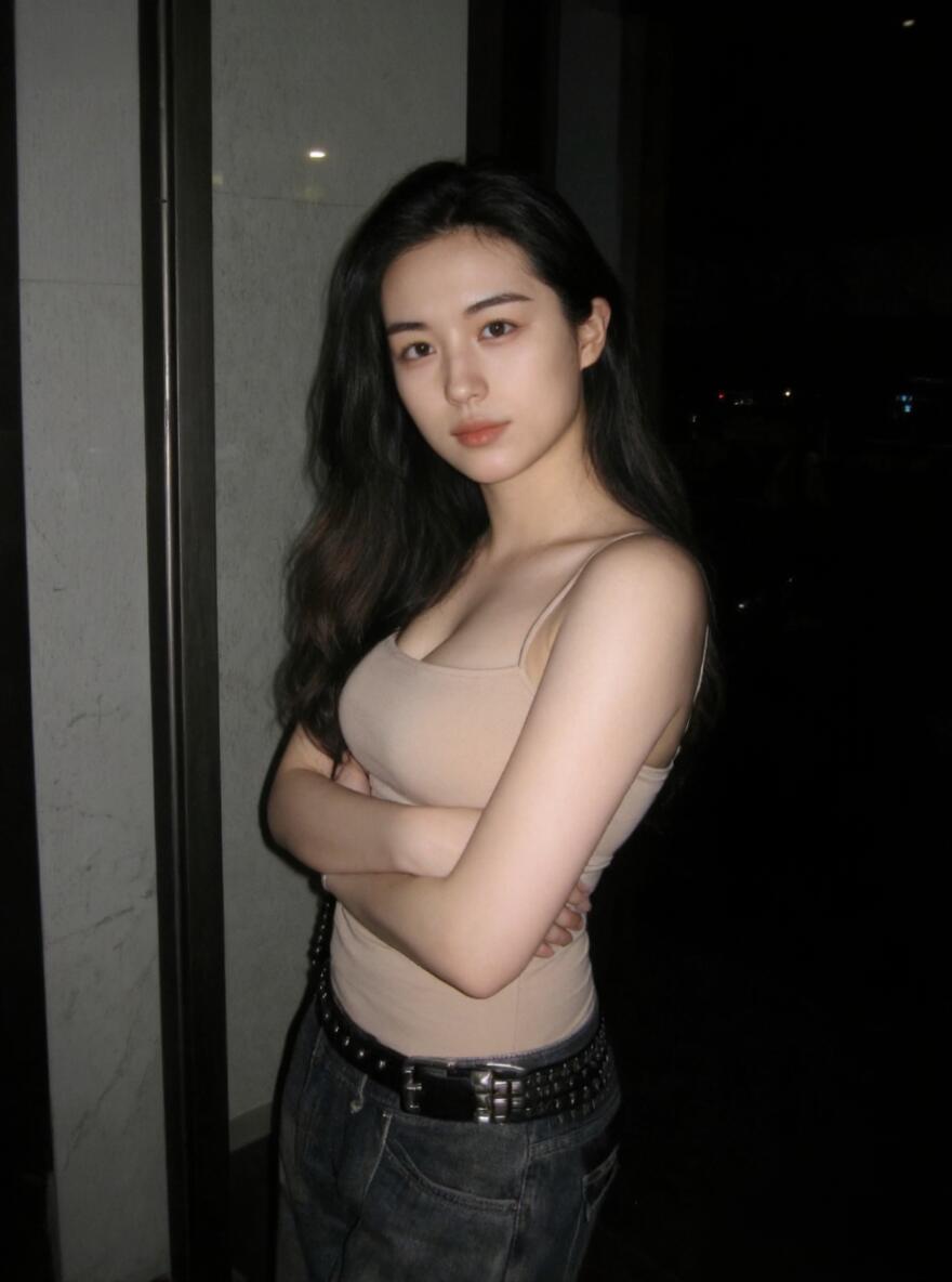 夜晚的灯光下,自信的笑容和优雅的姿态,展现都市女孩的魅力。