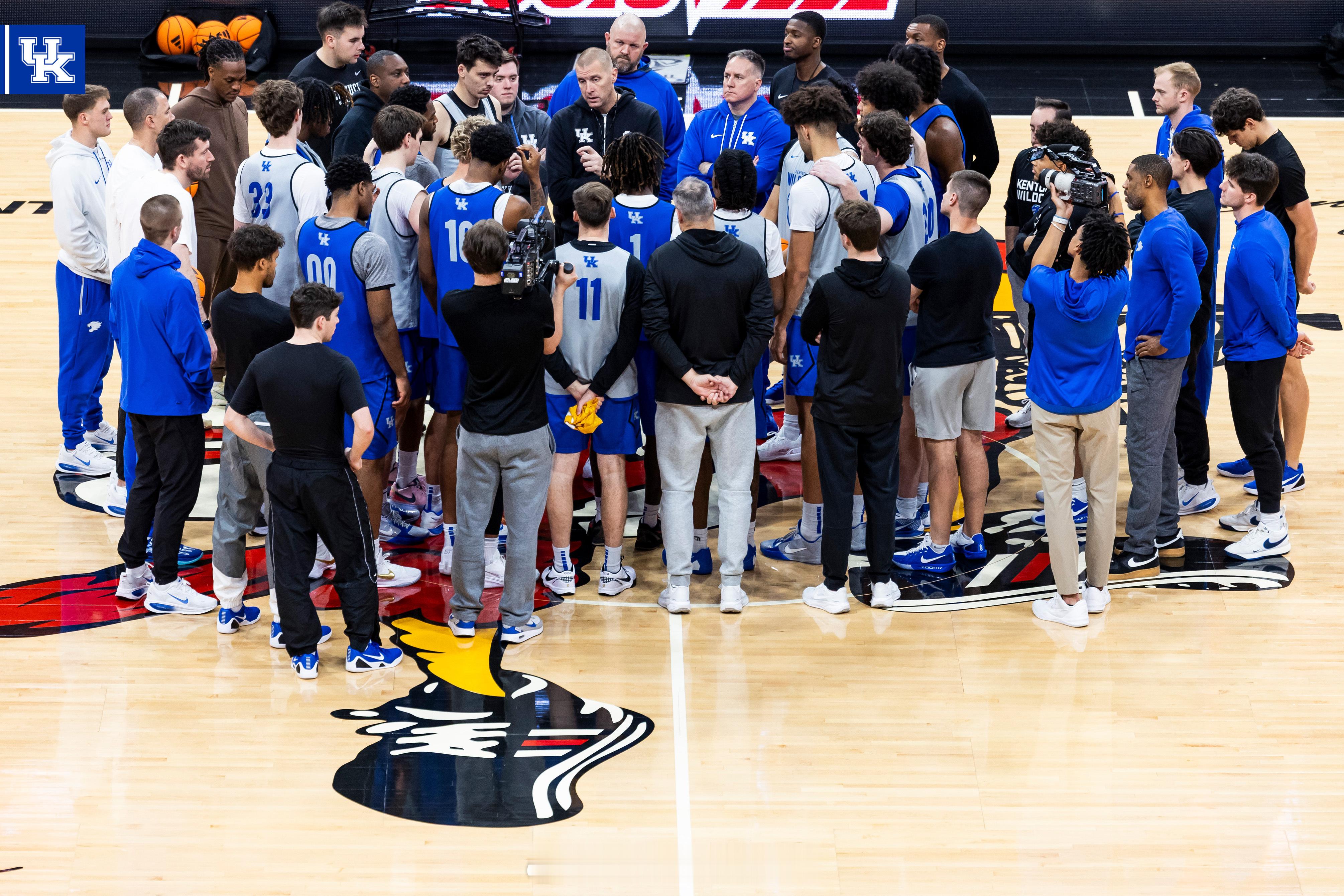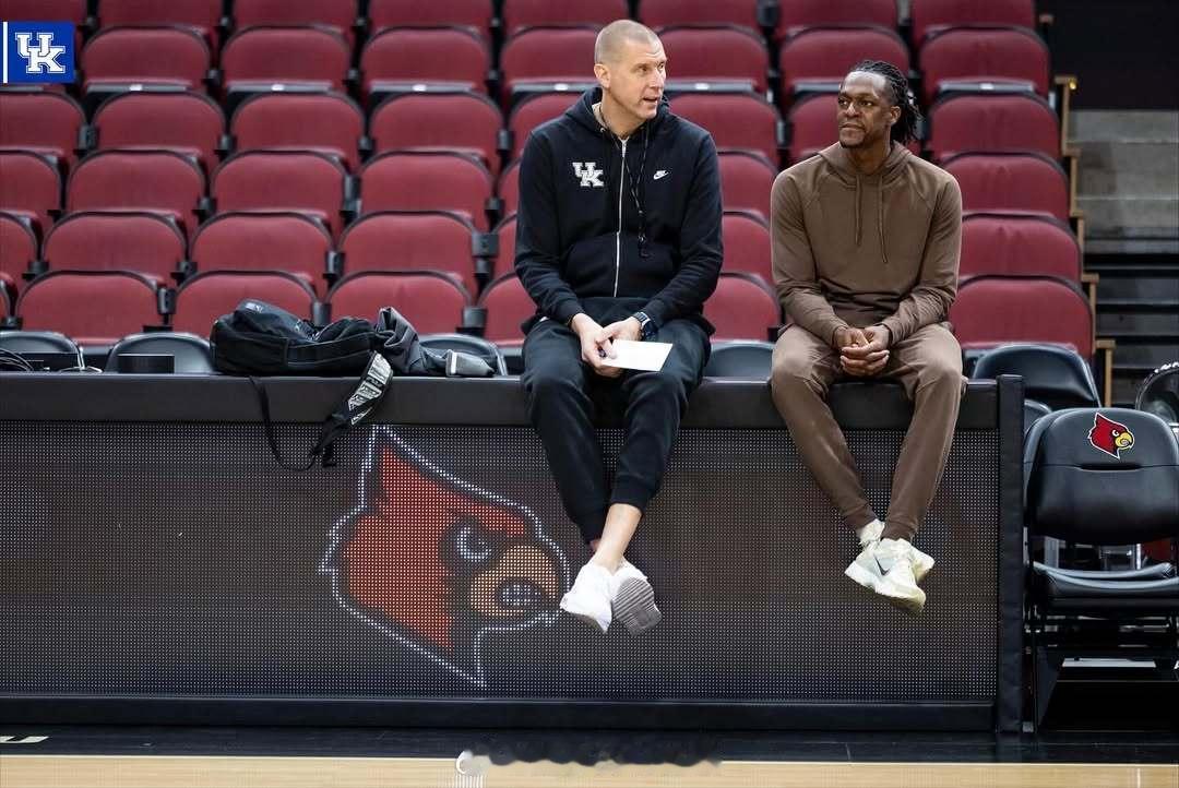 拉简·隆多在昨天路易斯维尔大学的比赛开始前,现身百胜中心观看了肯塔基大学的投篮训练。