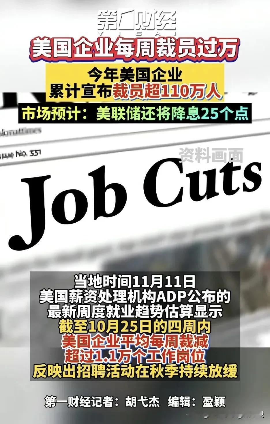 美国的企业每周要裁员1.1万,今年以来美国已经裁员超过110万人,相当于每23个美国人就有1个被裁员。互联网大厂首当其冲,微软今年裁掉1.5万人,谷歌800人,亚马逊2万人,甲骨文3000人,英特尔2万人,Meta 2.1万人,为什么今年美国裁员如此多?关键原因还是AI替代+成本收缩,连打底年薪200万人民币的码农都难逃裁员潮。目前看来,唯有降息,给企业减负,才能挽救就业啊!