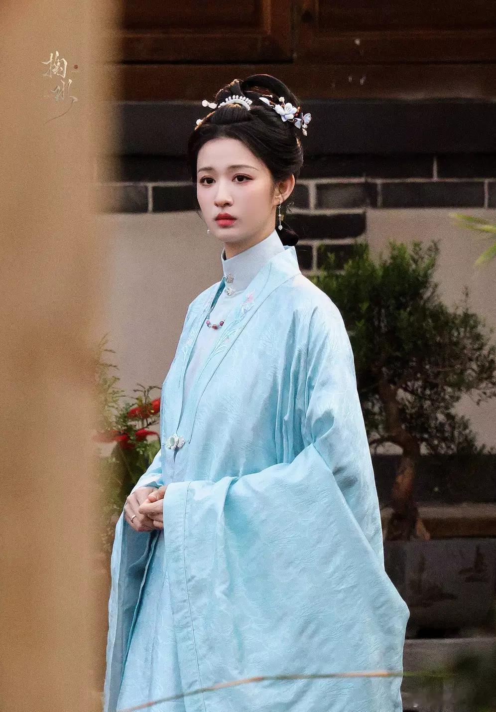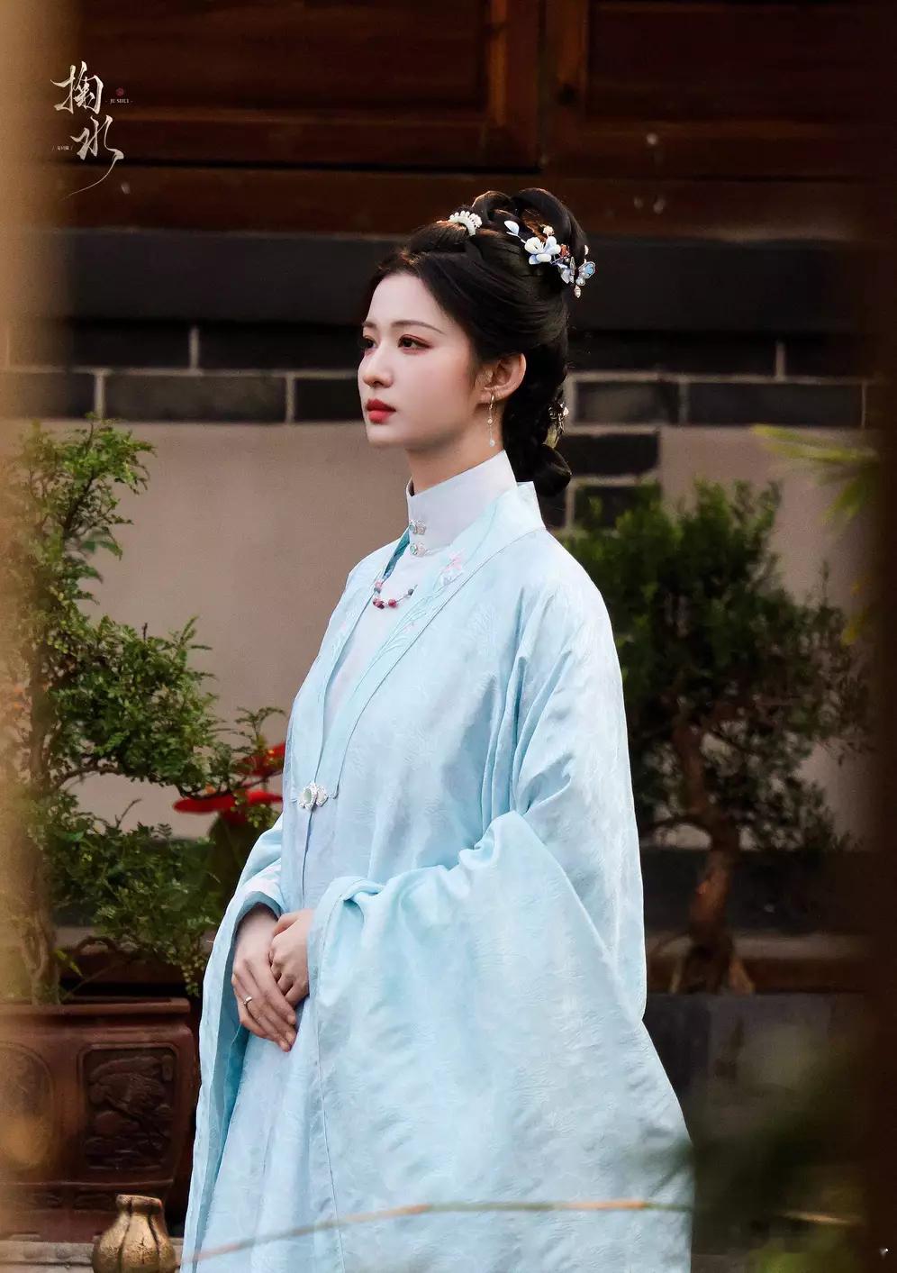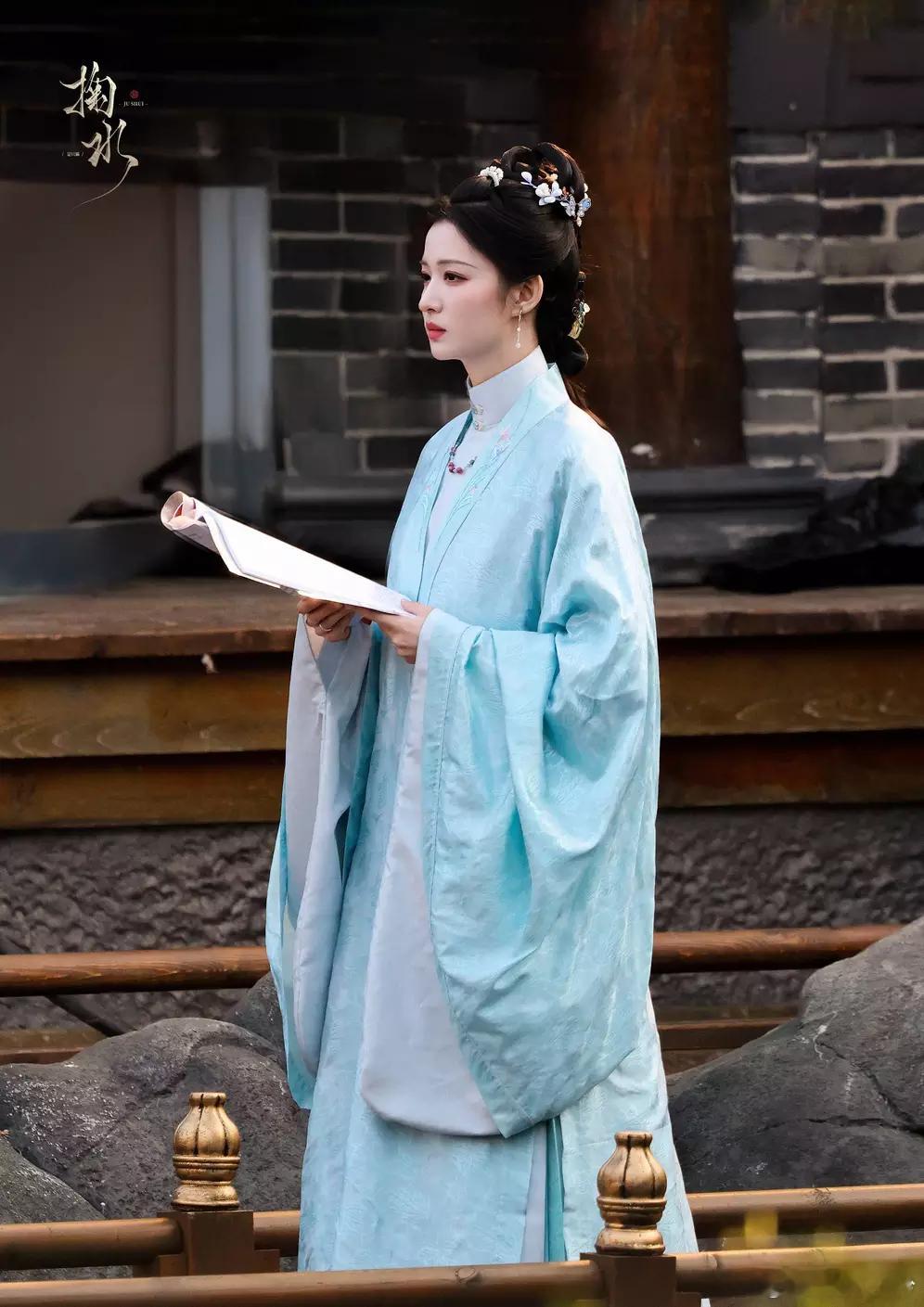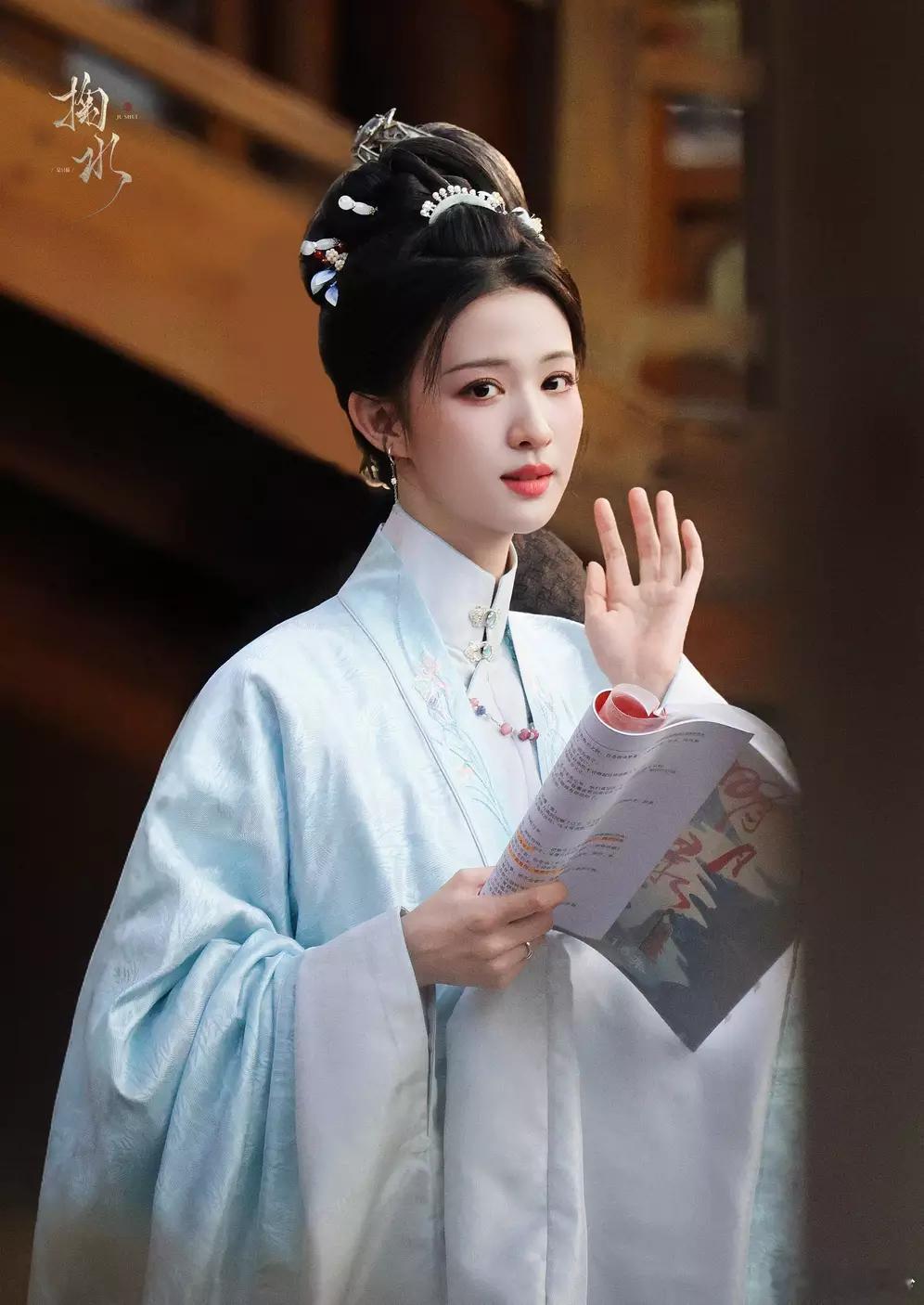王楚然穿蓝色汉服知性温婉 手持书卷文艺秀气